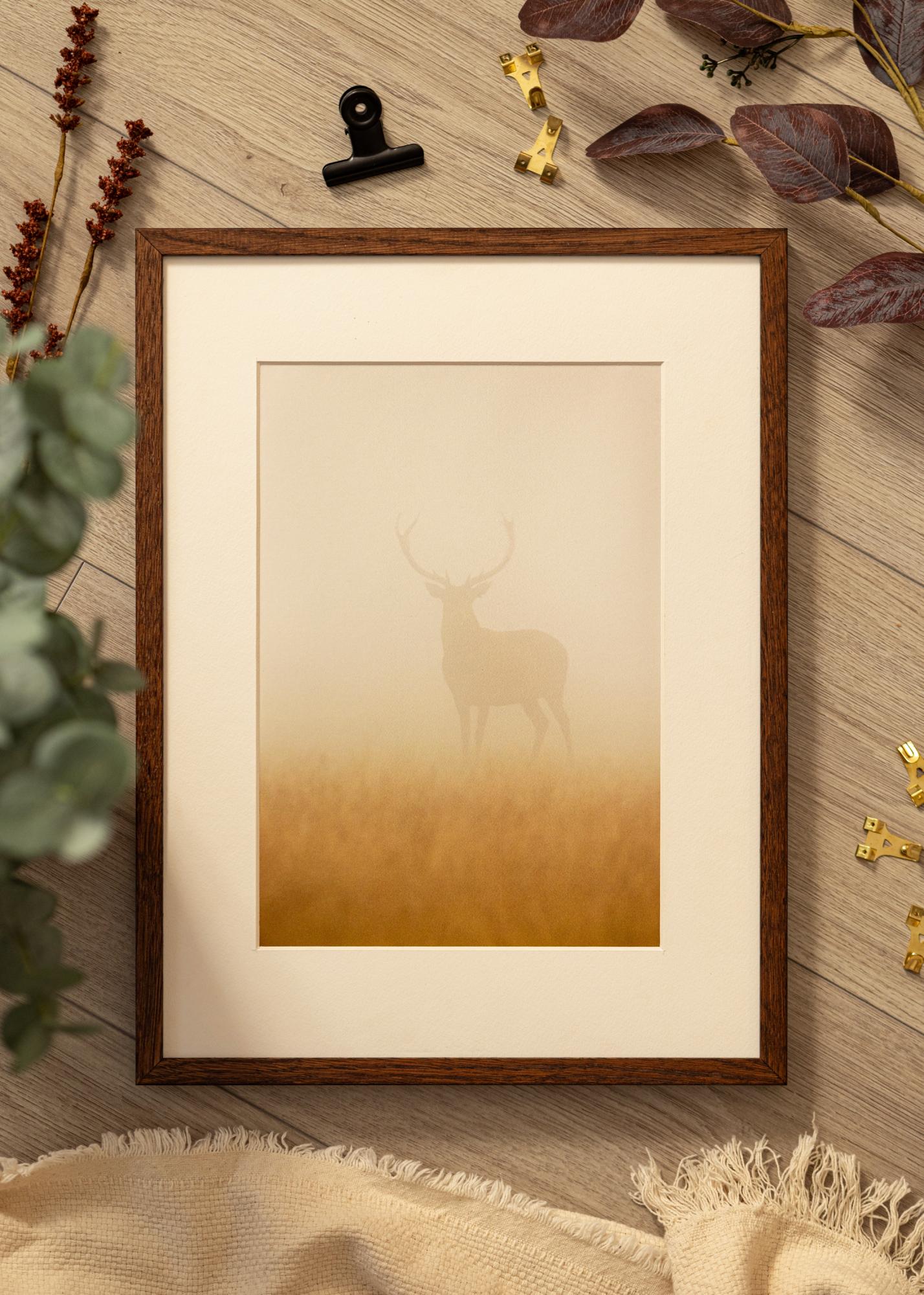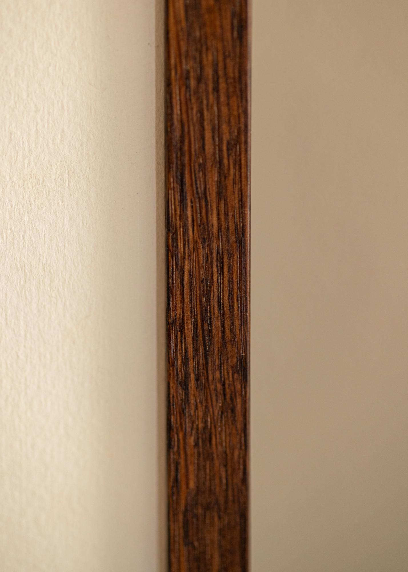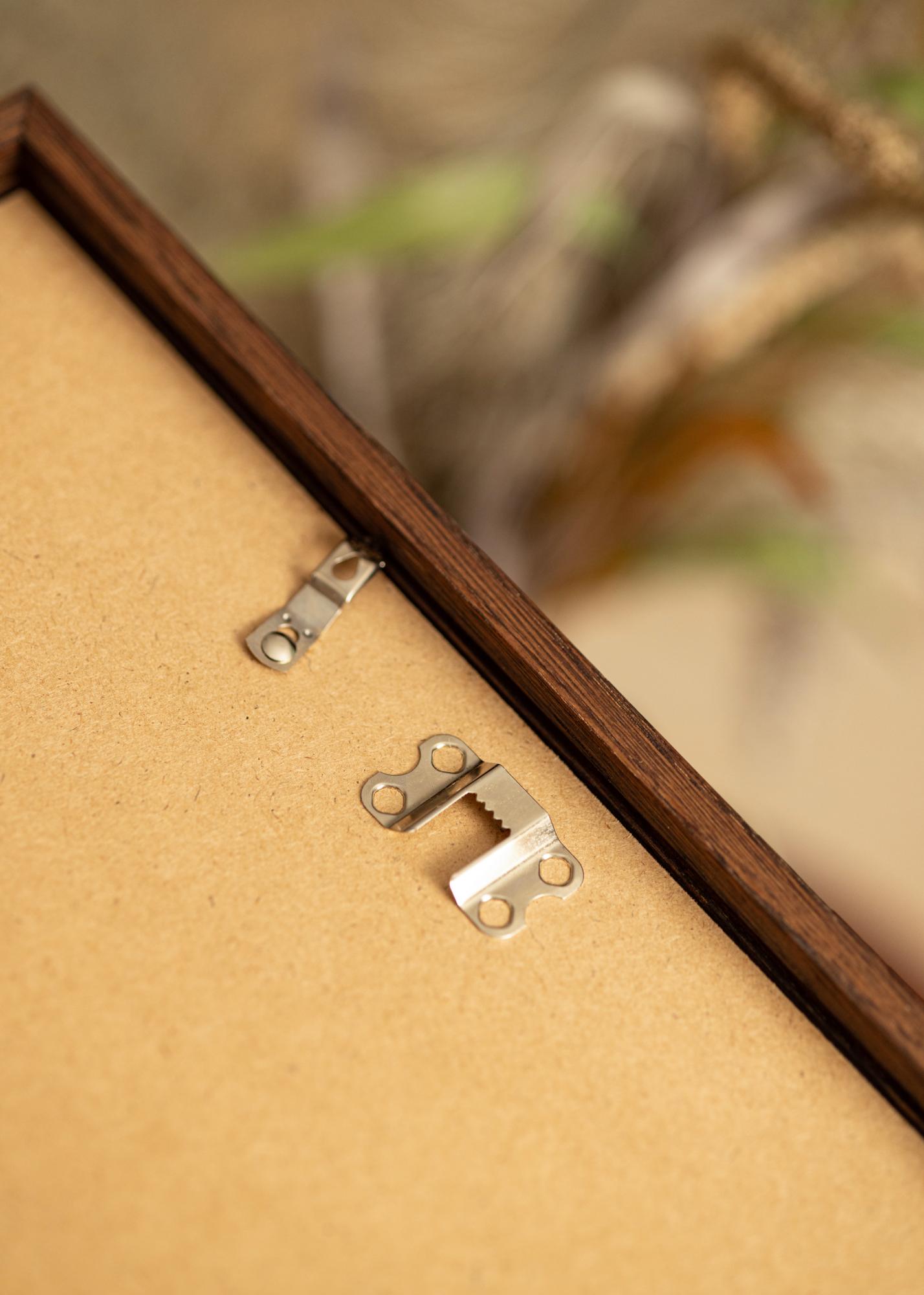 Tmavohnedá štruktúra dreva s jasným vláknom vytvára autentický pocit dreva a pridáva rustikálny šarm vášmu domovu. Bez ohľadu na to, či ho chcete zavesiť horizontálne alebo vertikálne, praktické kovové závesy na zadnej strane to uľahčujú prispôsobiť podľa vašich potrieb. Rám je navrhnutý tak, aby pasoval na motívy vo veľkosti 70 x 100 cm, čo z neho robí ideálny pre väčšie umelecké diela alebo fotografie.