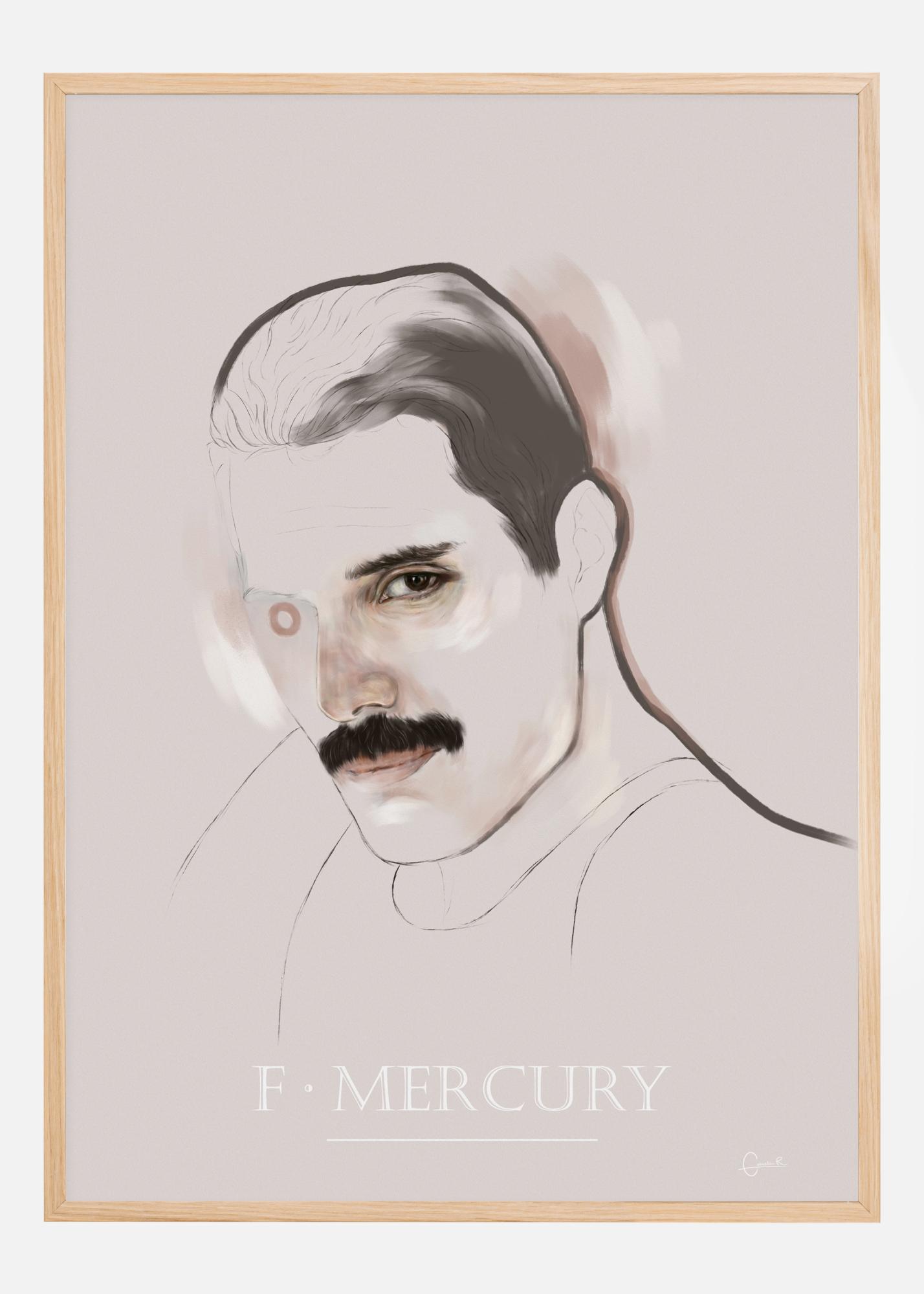 Pôsobivý portrét Freddieho Mercuryho na svetloružovom pozadí. Jeho ľavé oko zachytí váš pohľad, zatiaľ čo pravé oko je nahradené prsteňom. Jeho výrazné čierne fúzy a čierne uhlie sú hlavnými črtami v tomto výraznom plagáte. Silné ťahy vykresľujú kontúry jeho hlavy a ramien. Počujete hudbu, keď si tento portrét zavesíte doma.