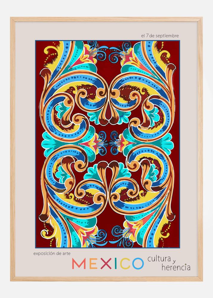 Plagát je poctou bohatému kultúrnemu krajinu Mexika a každý detail ilustrácie je starostlivo vypracovaný na oslavu umeleckých tradícií krajiny. Jednoduchý rám z duba dopĺňa teplé farby a robí umelecké dielo ideálnym doplnkom v akýchkoľvek priestoroch, ktoré oceňujú kultúrnu diverzitu a umeleckú energiu. Tento plagát nie je len pozvánkou na umeleckú výstavu, ale aj pozvánkou na skúsenosť a ocenenie jedinečnej estetiky a ducha Mexika.