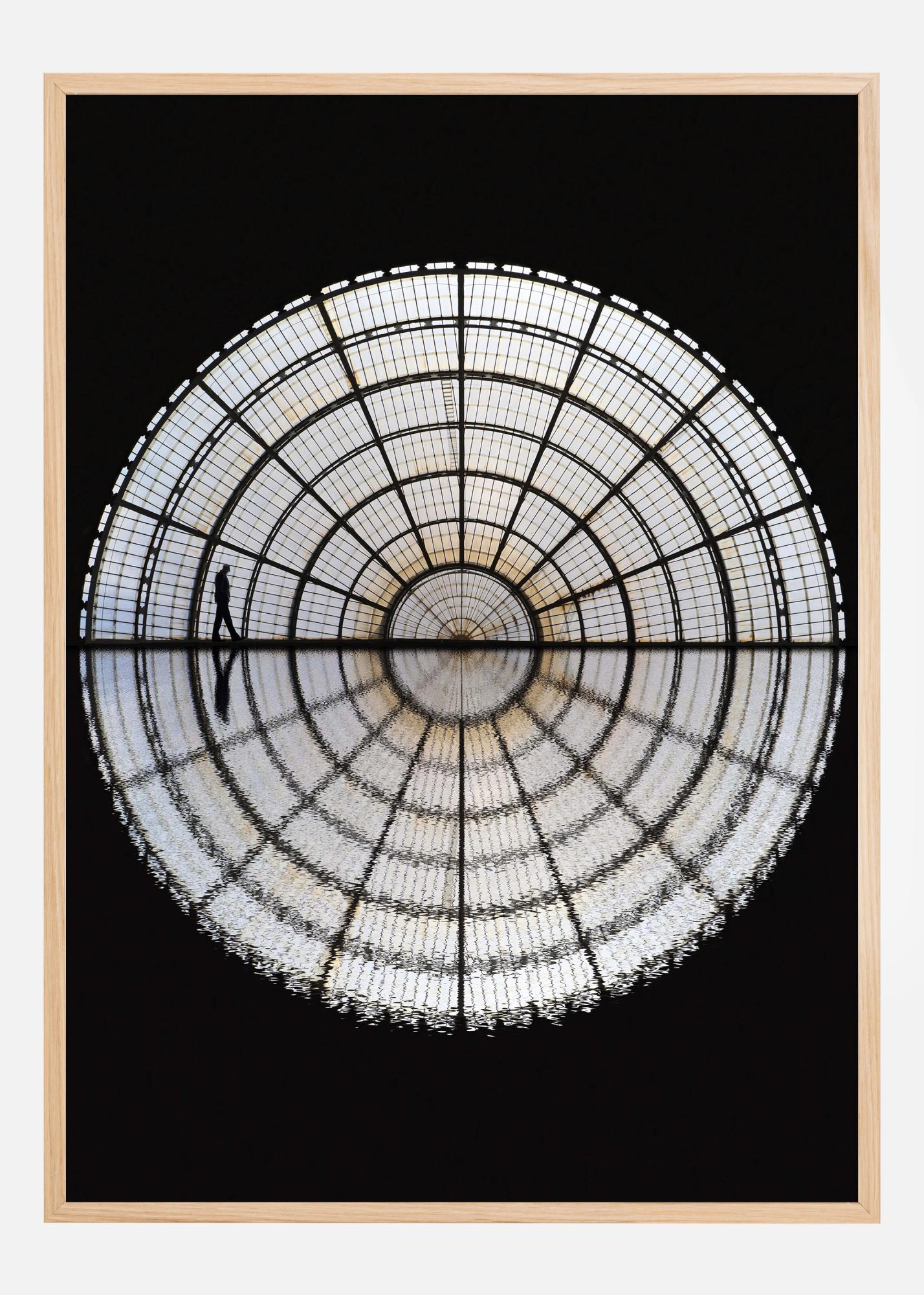 Tento umelecký plagát s názvom „Midnight Walker“ zachytáva osamotenú postavu, ktorá sa prechádza pod impozantnou kupolou zo žiarivej siete, čo vytvára pocit veľkosti aj izolácie. Vizuálny kontrast medzi tmavou nocou a žiarivou sieťou dodáva motívu život a divák môže pocítiť tichý pokoj osamotenej prechádzky.