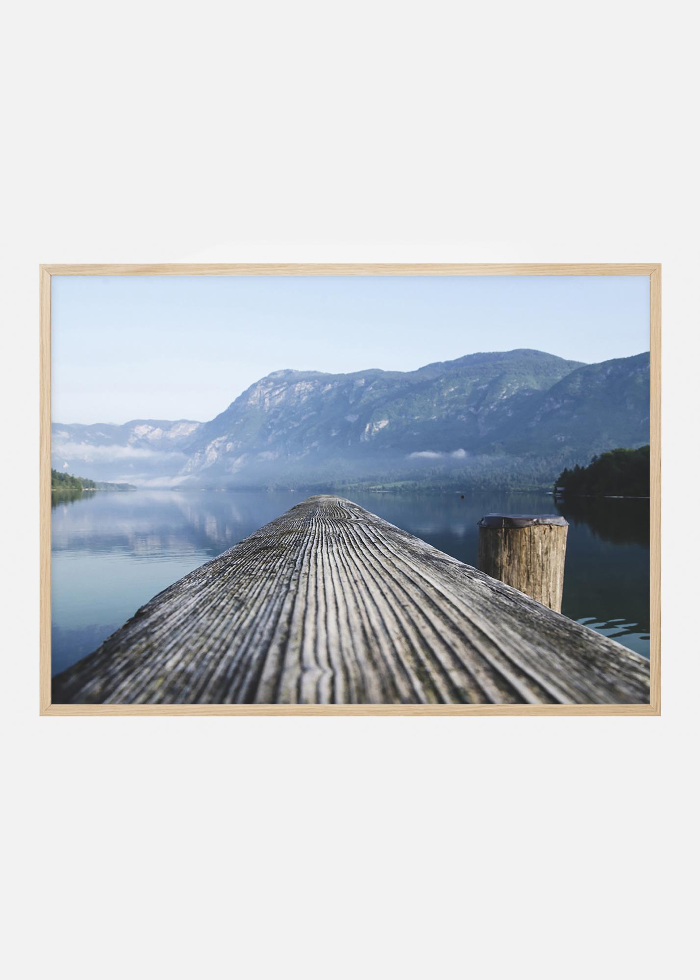 Výhľad na veľkolepú krajinu fjordu z vetrom ošľahanej móla. Krajinná tlač v modrých odtieňoch, ktorá je rovnako vhodná ako samostatný obraz na stenu, ako aj spolu s námornými doplnkami alebo inými obrazmi. Doplňte ju šedým dreveným rámom pre zosilnenie farieb v obraze, alebo tenším čiernym rámom pre minimalistickejší vzhľad.