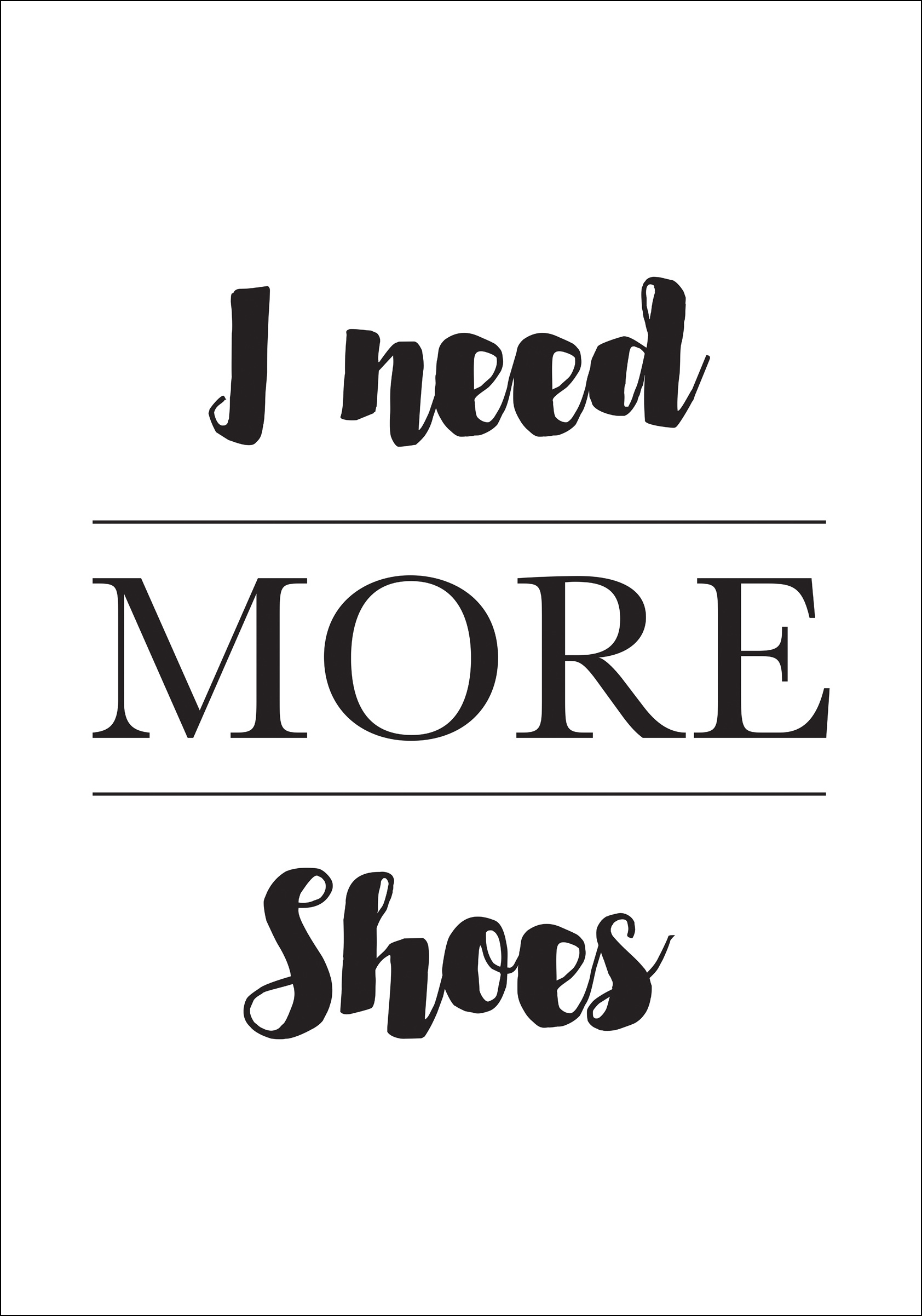 Si hrdý shopaholik zameraný na topánky, máme tu pre teba plagát, ktorý ti bude výborne vyhovovať! Pôvabný motív je čierny a pozostáva z textu "Potrebujem viac topánok" vytlačeného dvoma rôznymi fontami. V strede sa tiahnu dve dekoratívne čierne čiary. Pekný a minimalistický dizajn sa skvele hodí s čiernym alebo bielym rámom. Ak chceš, aby bol ešte osobnejší, vyber si rám vo svojej obľúbenej farbe. Plagát je k dispozícii v niekoľkých rôznych veľkostiach, takže ľahko nájdeš ten, ktorý sa hodí priamo na tvoj stôl alebo stenu.