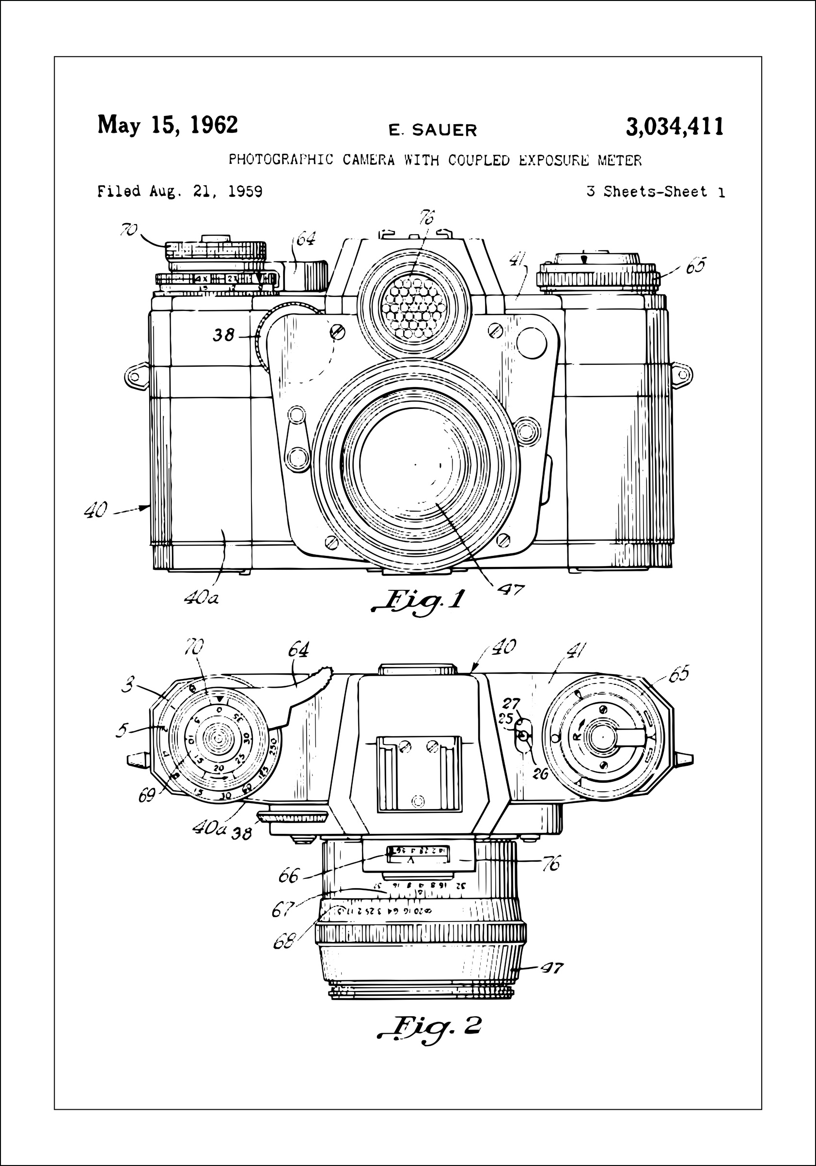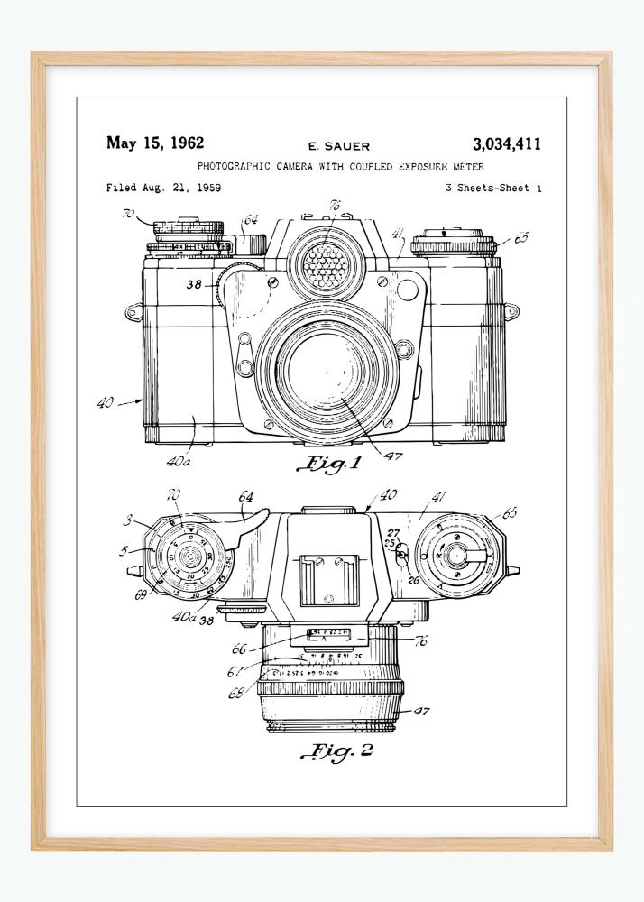 Patent, číslovaný 3,034,411, bol zaregistrovaný 21. augusta 1959 a vydaný 15. mája 1962 pre E. Sauera. Táto patentová potlač nie je len pocta zlatej ére fotografie, ale aj symbol nadčasového dizajnu a kreativity. Je to nápaditý umelecký kúsok, ktorý sa hodí do minimalistických aj industriálnych interiérových štýlov, skutočný rozhovorový štartér, ktorý doplní každú miestnosť, kde je umiestnený.