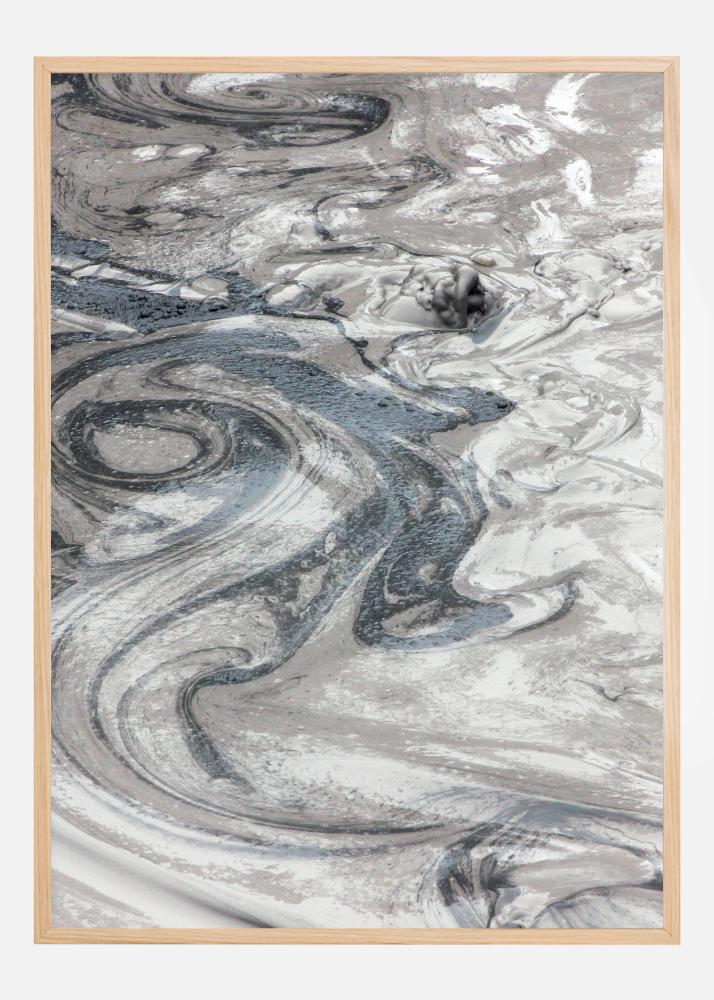 Úžasná fotografia bahnitej rieky, ktorá vytvára čokoládový povrch. Jemné čierne, béžové a biele víry sa dokonale spájajú a vytvárajú fantazijný vzor. Pre supermodernú obývačku je toto dokonalý plagát na zavesenie na béžovú stenu.