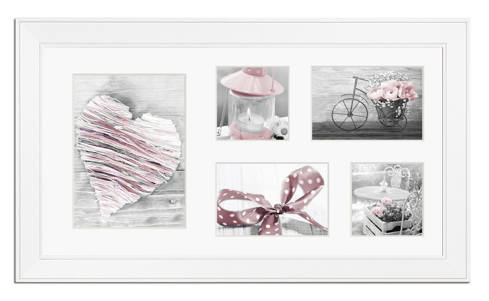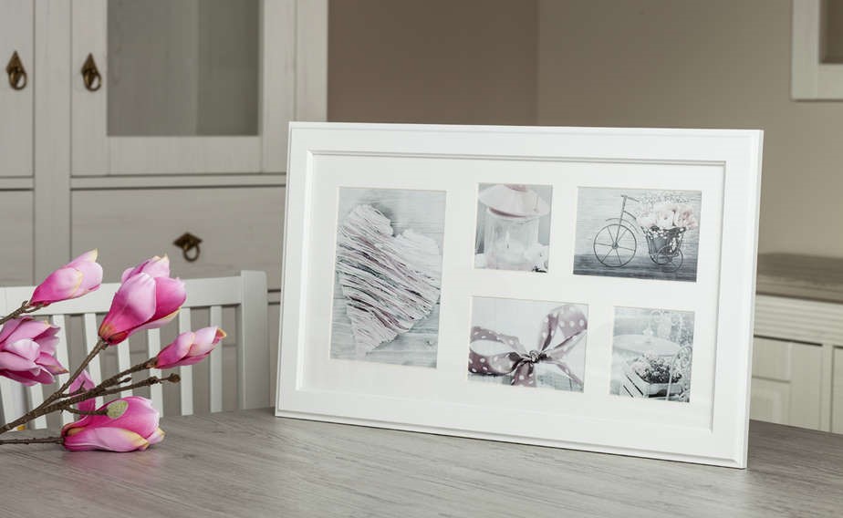 Kolážový rám Malmö Biely - 5 Obrázkov má miesto pre 5 obrázkov rôznych veľkostí.