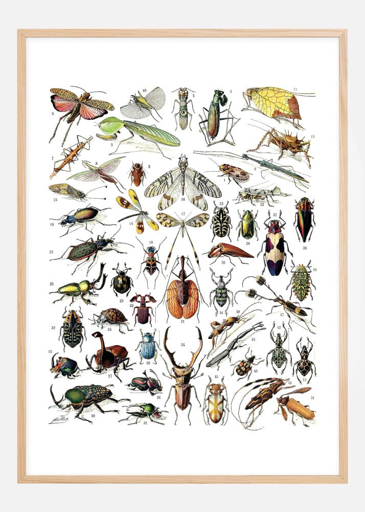 Prineste prírodu do svojho domova, keď umiestnite tento krásny školský plagát! Motív je prevzatý zo starej knihy o entomológii a zobrazuje veľkú skupinu farebných hmyzu. Keďže plagát je dostupný v niekoľkých rôznych veľkostiach, ľahko nájdete ten, ktorý vyhovuje práve vašim potrebám. Doplňte ho štýlovým rámom z našej veľkej ponuky!