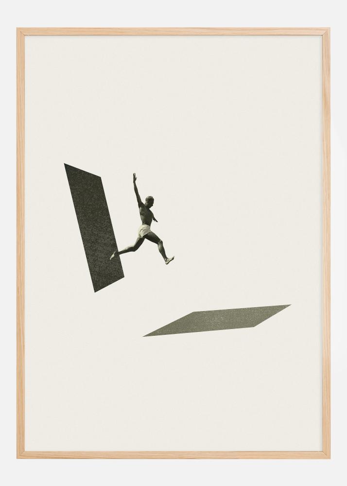 Minimalistický dizajn, so svojimi čistými líniami a obmedzenou farebnou paletou neutrálnych tónov, zdôrazňuje jednoduchosť akcie a pohyb postavy. Toto je plagát, ktorý inšpiruje diváka k odvahe riskovať a nestáť na mieste, čo z neho robí perfektný doplnok do pracovných priestorov, študovni alebo iných prostredí, kde sú motivácia a pohon cennými vlastnosťami.