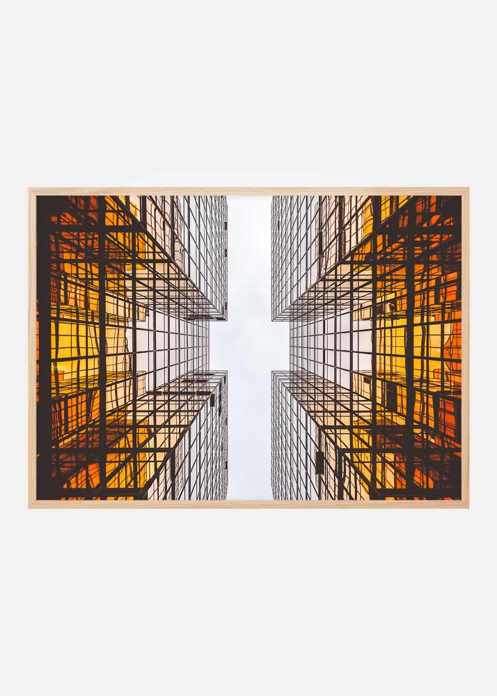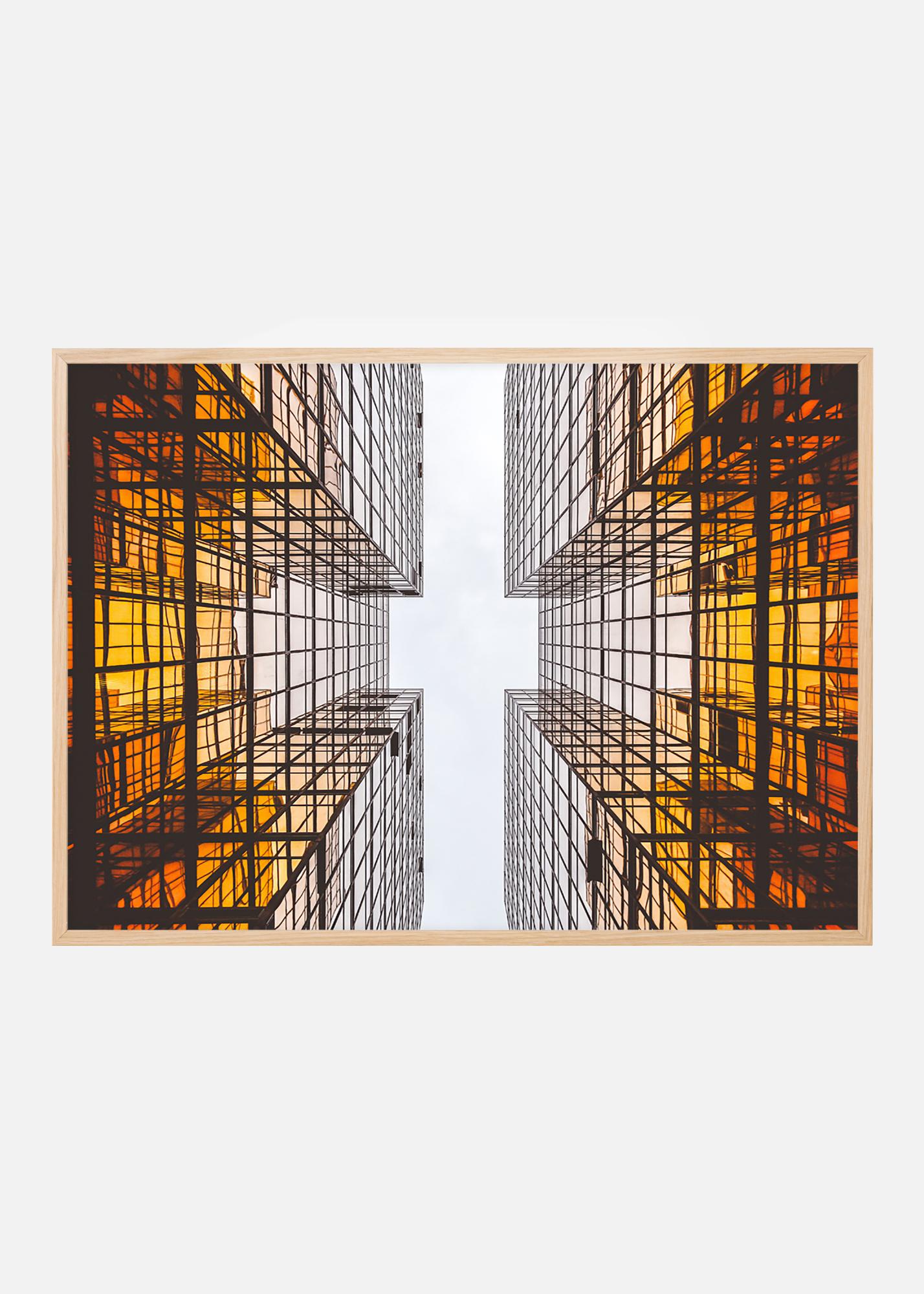 Plagát s futuristickou architektúrou, ktorá svojimi grafickými líniami vytvára vzrušujúci vzor. Farby prechádzajú z hlbokej oranžovej na základe budovy k bielej oblohe. Plagát sa dobre hodí s tenším rámom tak v minimalistickom interiéri, ako aj v iných štýloch s grafickými prvkami. Skombinujte ho s ďalšími obrazmi na tému vzrušujúcej architektúry alebo mestských prostredí.