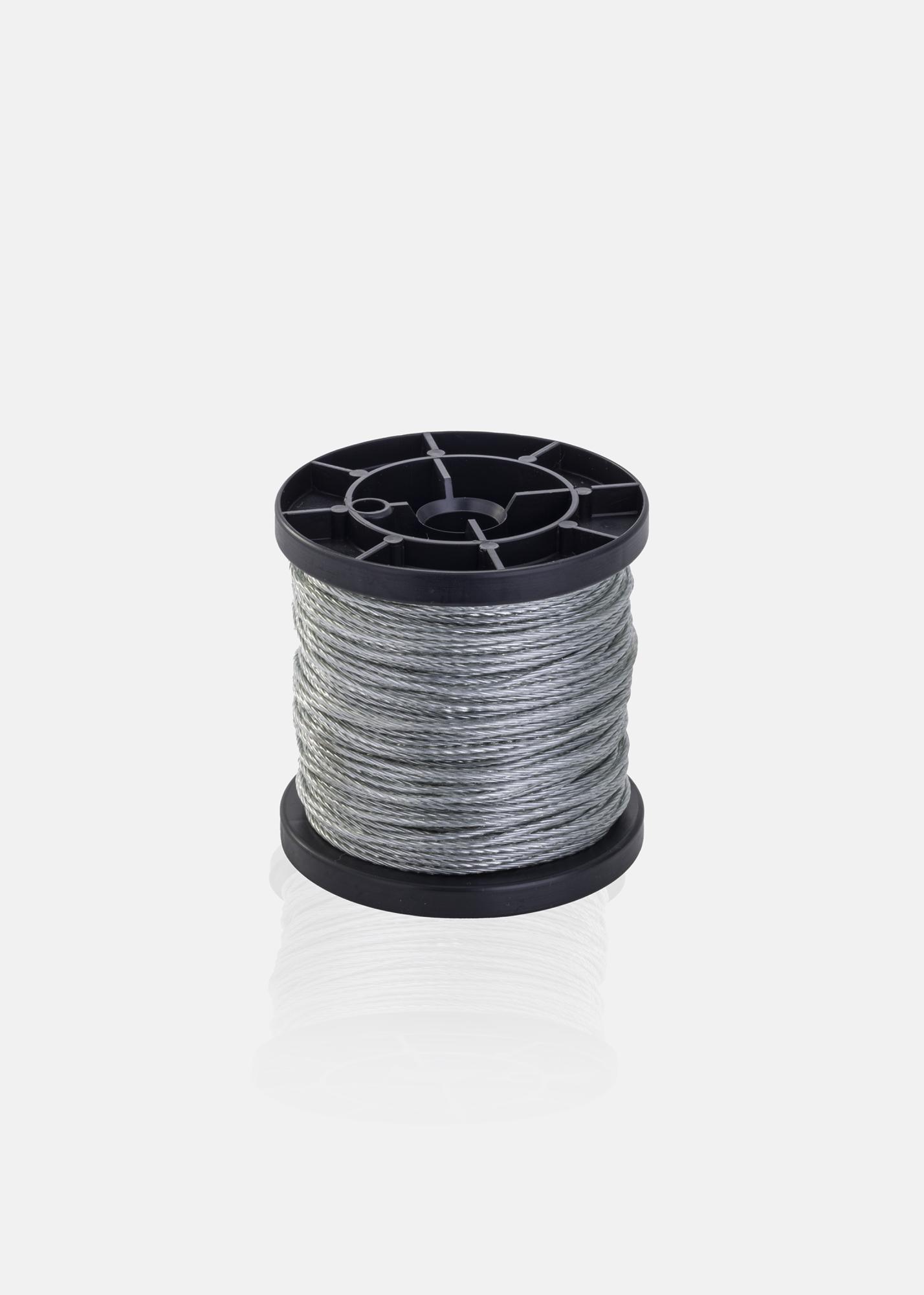 Povlečené oceľové lanko na praktickej 50-metrovej cievke. Perfektné, keď chcete mať poriadok vo všetkých svojich obrazoch. Hrúbka je celkovo 2,5 mm v priemere, kde samotná oceľová časť je 1 mm a povrchová úprava PVC je 1,5 mm.