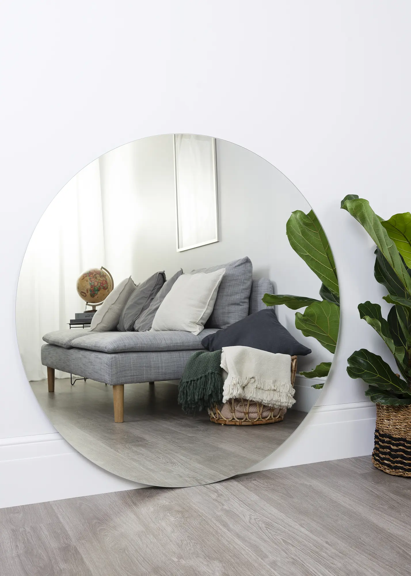 110 cm Ø okrúhle zrkadlo, ktoré je súčasťou série okrúhlych zrkadiel. Zrkadlo je extrémne tenké a elegantné a hodí sa do všetkých typov miestností a štýlov zariadenia.
