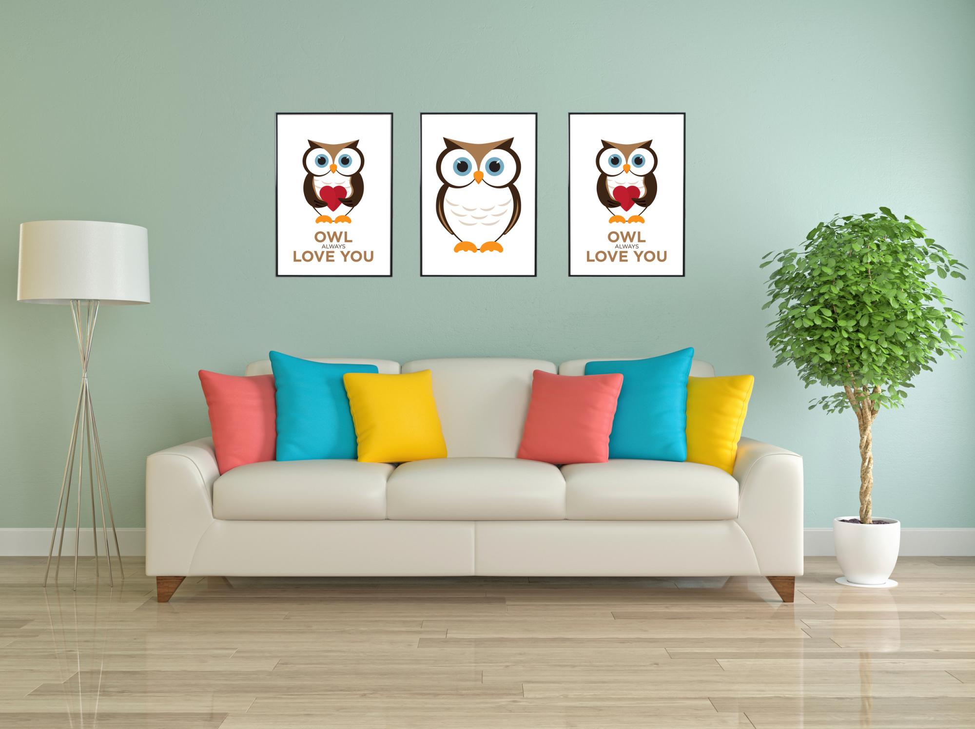 Soví plagát pre detskú izbu alebo ako darček pre niekoho, kto má obzvlášť rád vtáky. Grafická tlač sa svojím čistým výrazom a tlmenými farbami hodí do všetkých štýlov interiéru. Zarámujte plagát s rámom, ktorý zvýrazní niektorú z farieb motívu, alebo vyberte rám, ktorý sa hodí k ostatným dekoráciám na stene. Obraz môžete zavesiť spolu s inými grafickými tlačami, aby ste vytvorili zaujímavú stenu, ktorá sa stane stredobodom miestnosti.