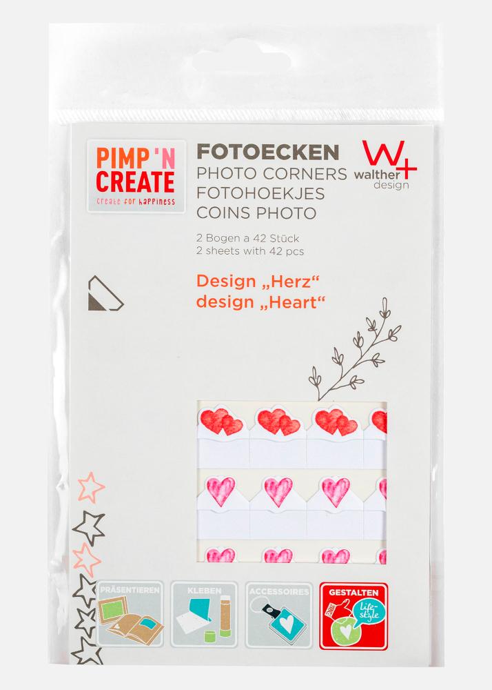 PAC Fotorožky Heart je sada s 84 samolepiacimi fotorožkami s pekným motívom srdca. Perfektné na šetrné pripevnenie fotografií do albumov bez použitia lepidla alebo pásky. Dekoratívny a láskyplný detail, ktorý je výborný na svadobné a pamätné albumy.