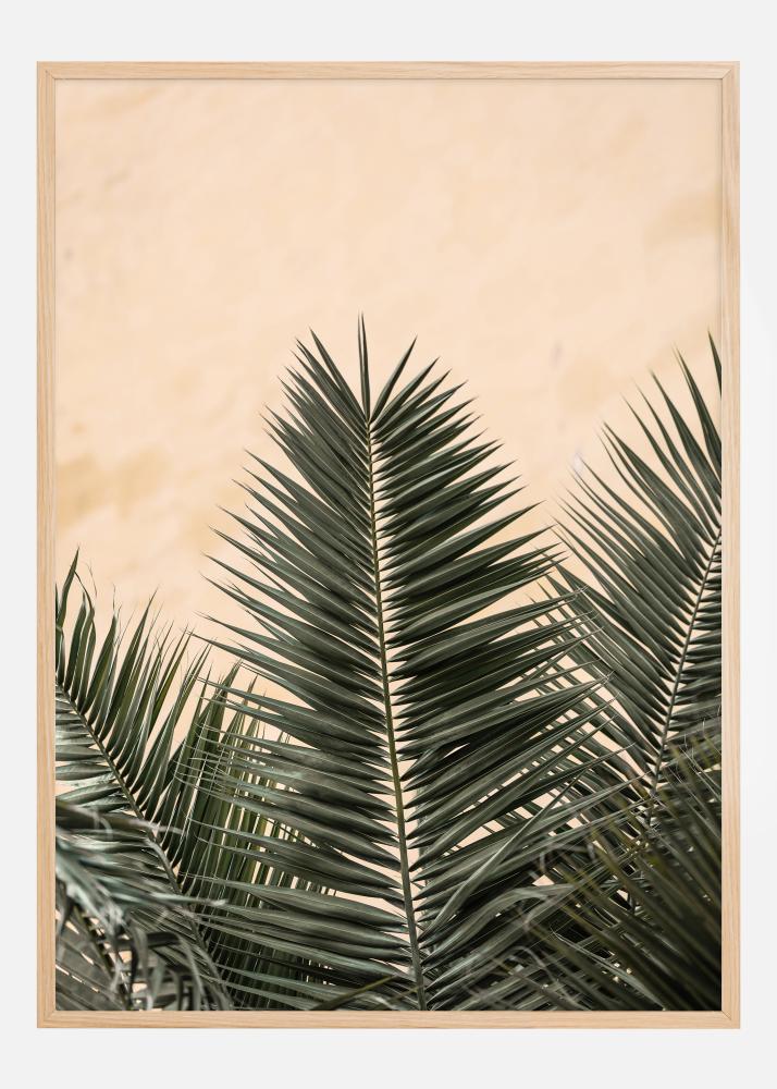 Vytvorte pocit tepla a prírodnej krásy s týmto štýlovým plagátom, ktorý zvýrazňuje eleganciu jednotlivého palmového lístka na textúrovanom pozadí. Tento plagát zachytáva podrobný vzor palmových listov, ktorých bohaté zelené odtiene kontrastujú s teplým, pieskovým pozadím, pričom pripomínajú upokojujúci západ slnka na exotickej pláži.
