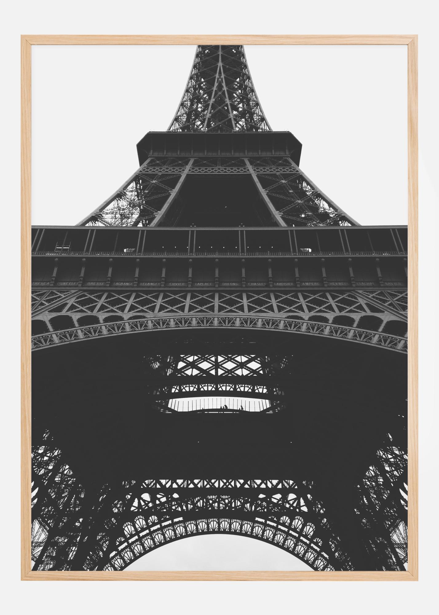 Fantastický čiernobiely plagát s Eiffelovou vežou. Obrázok masívnej železnej konštrukcie je nasnímaný z pohľadu žaby, čo umožňuje veži dokonale splynúť so sivou oblohou. Tento technický majstrovský kúsok vytvára ľahkú, vzdušnú a pevnú štruktúru. Perfektná tlač na zavesenie v modernom prostredí.