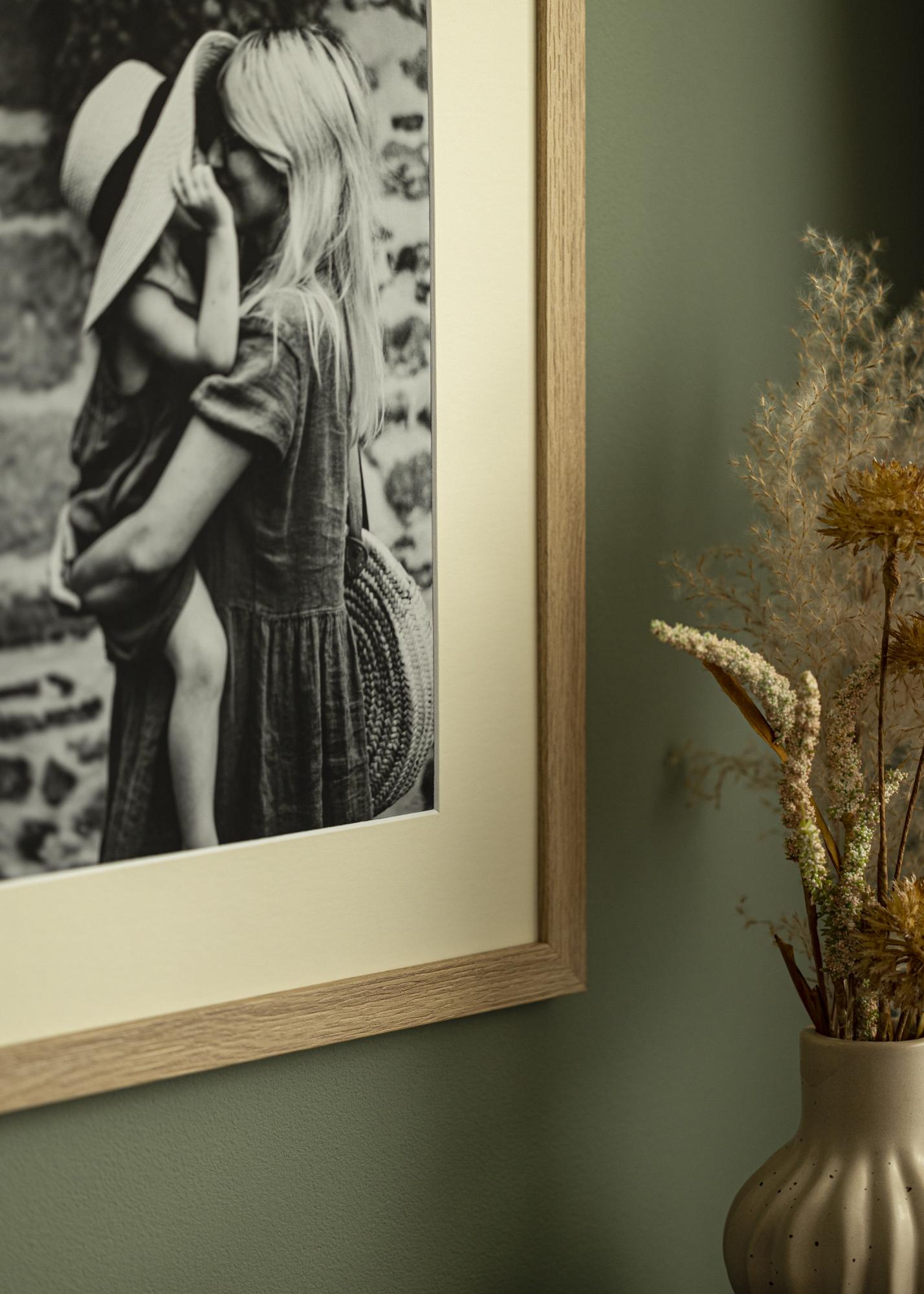 Tento passepartout má elegantný, starobiely odtieň, ktorý sa hodí ku všetkému a dáva obrazu svieži dojem. Materiál pochádza z udržateľného lesného hospodárstva a passepartout je bez kyselín a PH-neutrálny, čo zachováva vysokú kvalitu motívu.