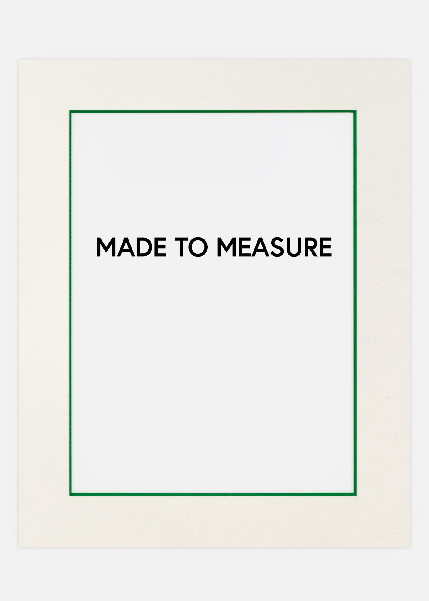 Bela bezkyselinová a pH neutrálna pasparta vysokej kvality so zeleným jadrom, ktoré poskytuje extra farebný akcent v blízkosti motívu. Perfektné, keď chcete niečo navyše pre vaše najlepšie fotografie. Všetky pasparty na mieru vyrábame v našej vlastnej dielni na pasparty.