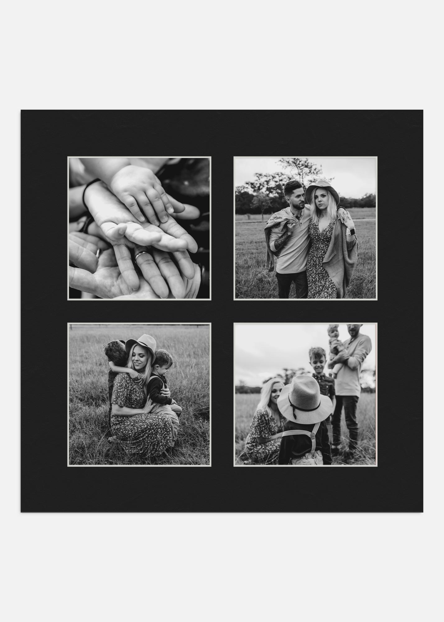 Bezfarebný čierny kolážny paspart so šikmými bielymi okrajmi najvyššej kvality. V pasparte je miesto pre 4 obrázky. Perfektné, keď si chcete vytvoriť vlastnú osobnú fotokoláž.