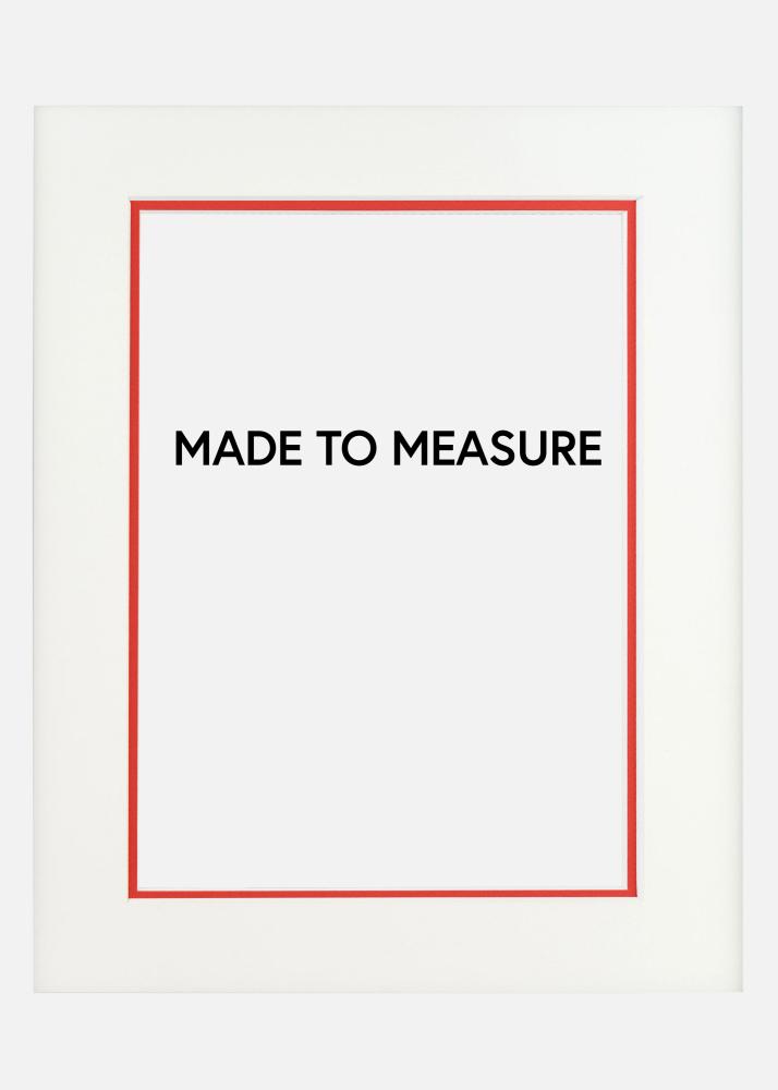 Na mieru upravený passepartout v dvoch vrstvách s bielou passepartou ako základnou a spodnou vrstvou v červenej, ktorá poskytuje farebný okraj o 5 mm okolo obrázka. Perfektné, keď chcete vytvoriť efektný rámec, ktorý zvýrazňuje váš obraz a dodáva motívu dodatočnú hĺbku. Všetky naše passepartouty majú pekne rezané hrany v 45 stupňovom uhle, čo poskytuje seriózne a profesionálne orámovanie pre vaše obrázky.