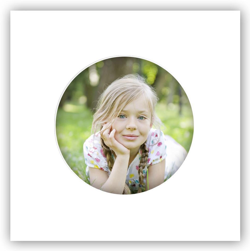 Bezfarebná biela štvorcová pasparta s okrúhlym otvorom pre obrázok. Hodí sa napríklad na portrétové fotografie. Pasparta je najvyššej kvality a bezfarebná, čo je šetrné pre vaše obrázky.