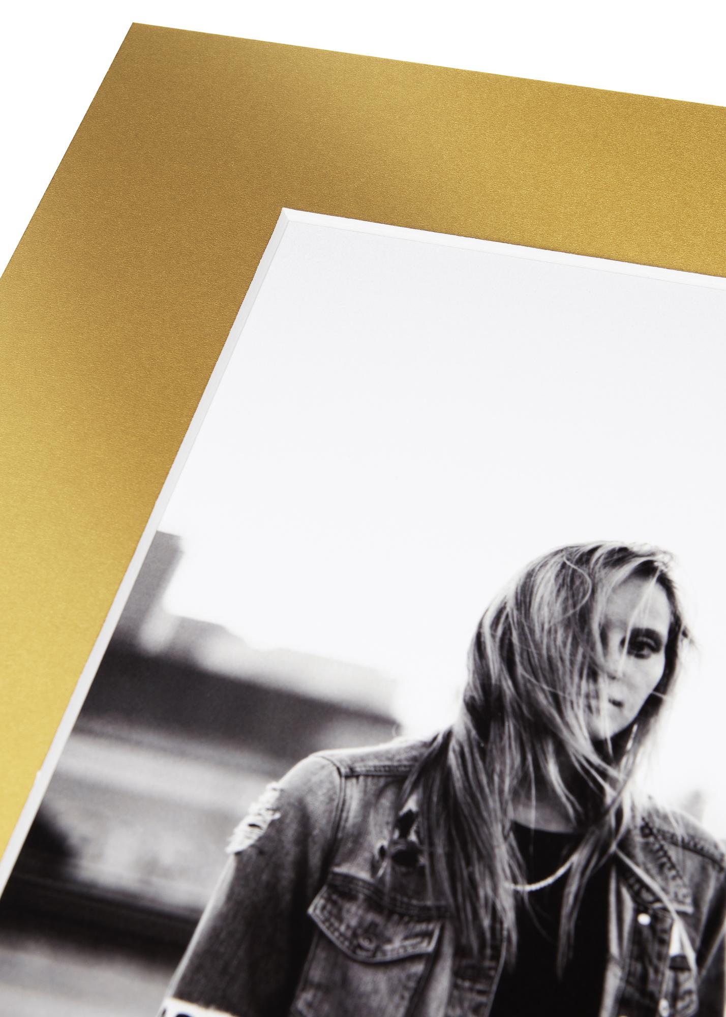 Pasparta Old Gold má matnú zlatú farbu, ako aj bielu jadrovú farbu, čo znamená, že biele okraje prebiehajú okolo obrazu a ešte viac zvýrazňujú motív.