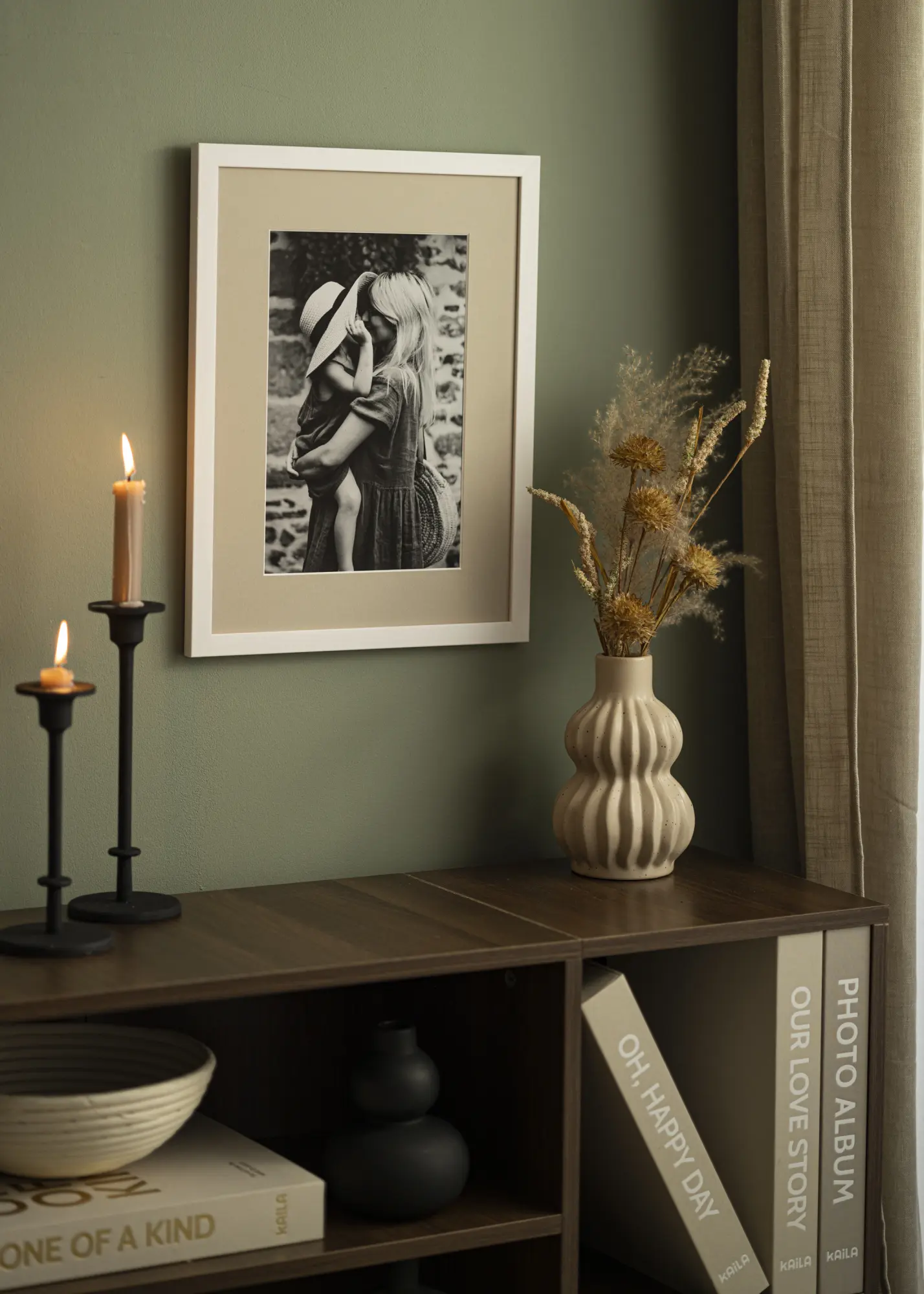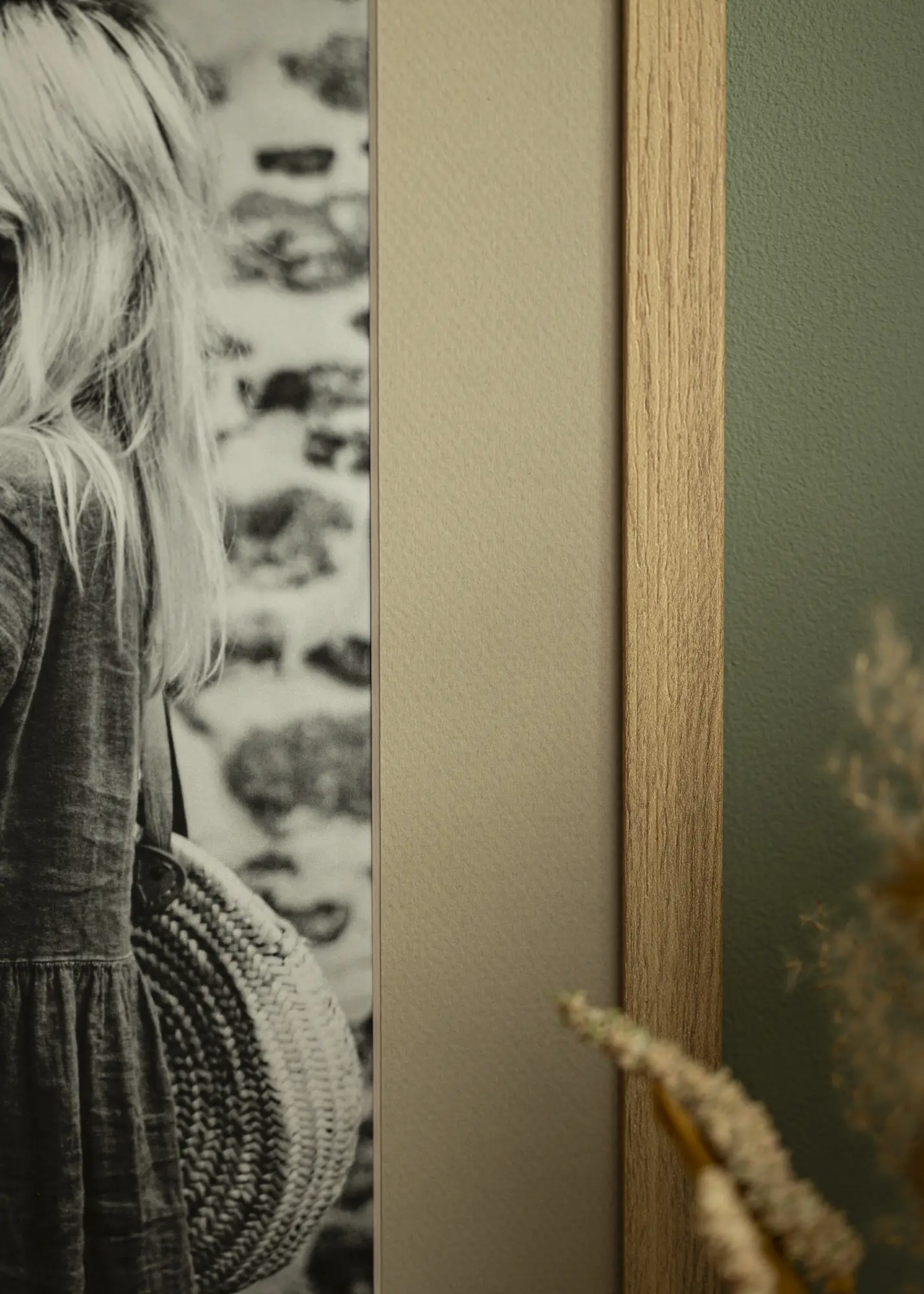 Šikmo rezaná vnútorná hrana s bielym jadrom vytvára elegantný kontrastný efekt a dodáva rámovaniu hĺbku. To robí paspartu výbornou voľbou pre klasické aj moderné prezentácie. Jemná štruktúra materiálu prispieva k sofistikovanému výrazu, čo ju robí ideálnou pre všetky druhy umeleckých diel.