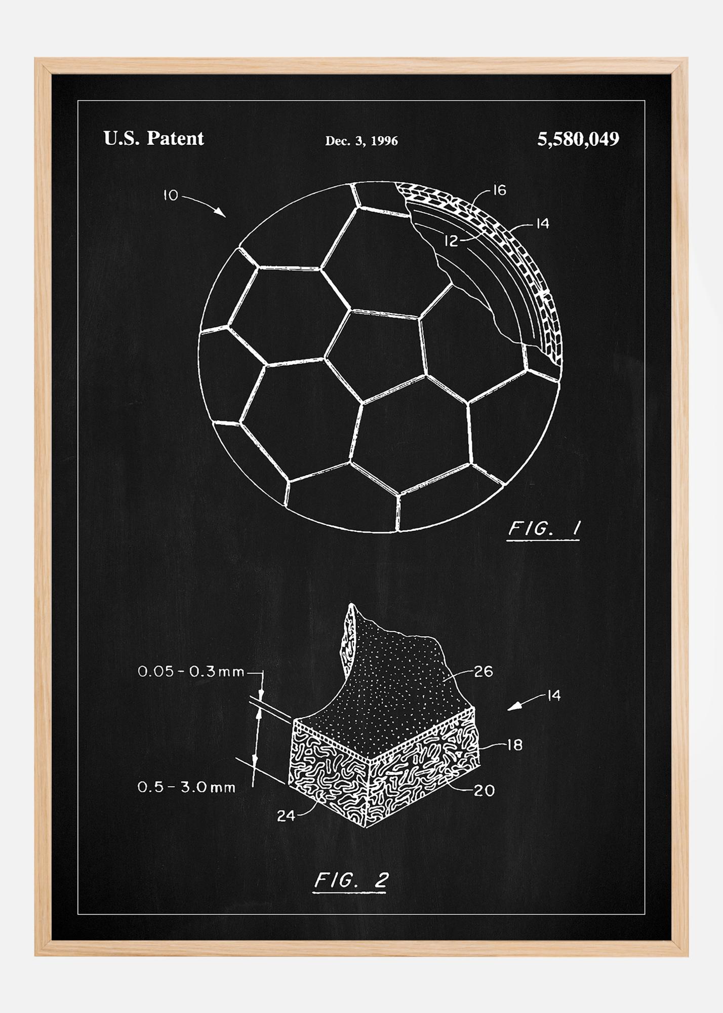 S jeho klasickým čiernobielym patentovým nákresom a elegantnou prezentáciou je tento patentový plagát decentným, ale výrečný doplnok interiéru, ktorý sa výborne hodí do domácnosti, kancelárie alebo športového baru. Detailný nákres zvýrazňuje ikonickú geometriu futbalovej lopty a jej vnútornú komplexnosť a konštrukciu, s uvedením rozmerov, ktoré poskytujú autentický pocit. Táto patentová ilustrácia kombinuje estetiku s vedou a je inšpirujúcou pripomienkou technického pokroku, ktorý formuje náš svet.