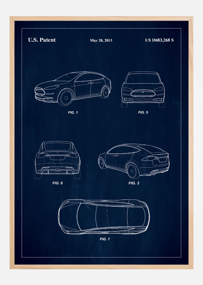 Hrdo predstavujeme tento patentový plagát, grafické zobrazenie US D683,268 S, udelené 28. mája 2013, ktoré zobrazuje návrh vozidla od Tesly, ktorá je rovnako inovatívna ako esteticky príťažlivá. Plagát je ideálnym doplnkom do každej zberateľskej domácnosti alebo pracoviska a ponúka jedinečný pohľad na dizajnový proces za jednou z najvýraznejších foriem v automobilovom priemysle.