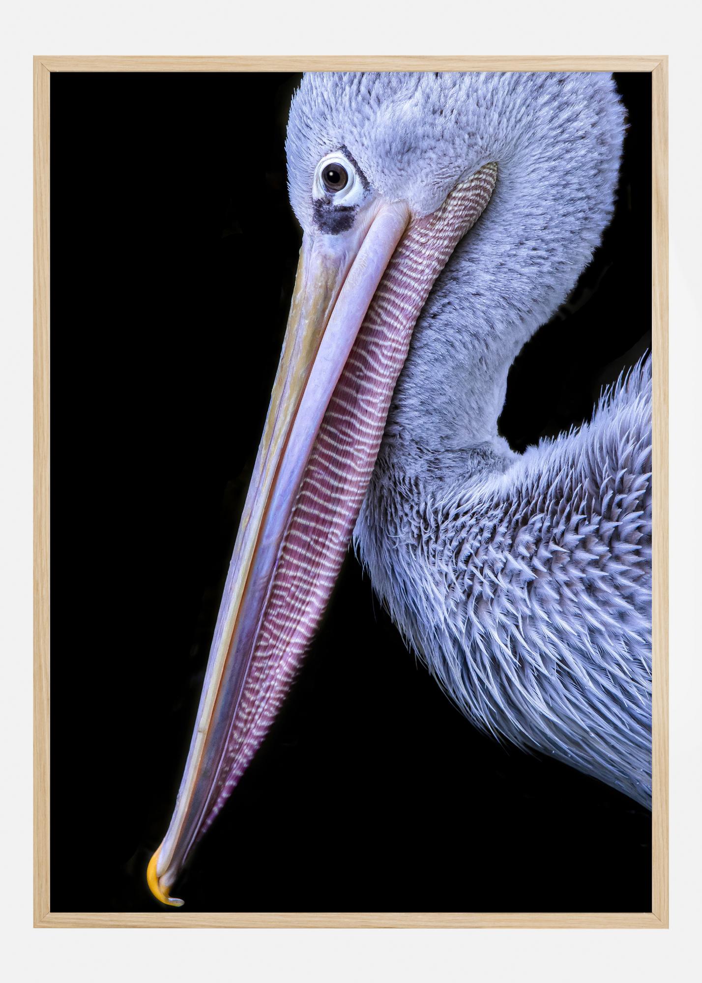 Tento výrazný plagát zvýrazňuje krásu a detailnosť pelikána, s jeho unikátnym zobákom a perím zachyteným na hlbokej čiernej pozadí. Tento impozantný vtáčí zobák, v jemných odtieňoch ružovej a žltej, predstavuje silný kontrast, ktorý dodáva motívu živú a takmer trojrozmernú hĺbku. Perfektný tisk pre všetkých milovníkov prírody a ornitológov, ktorí chcú mať kúsok divočiny vo svojom domove.