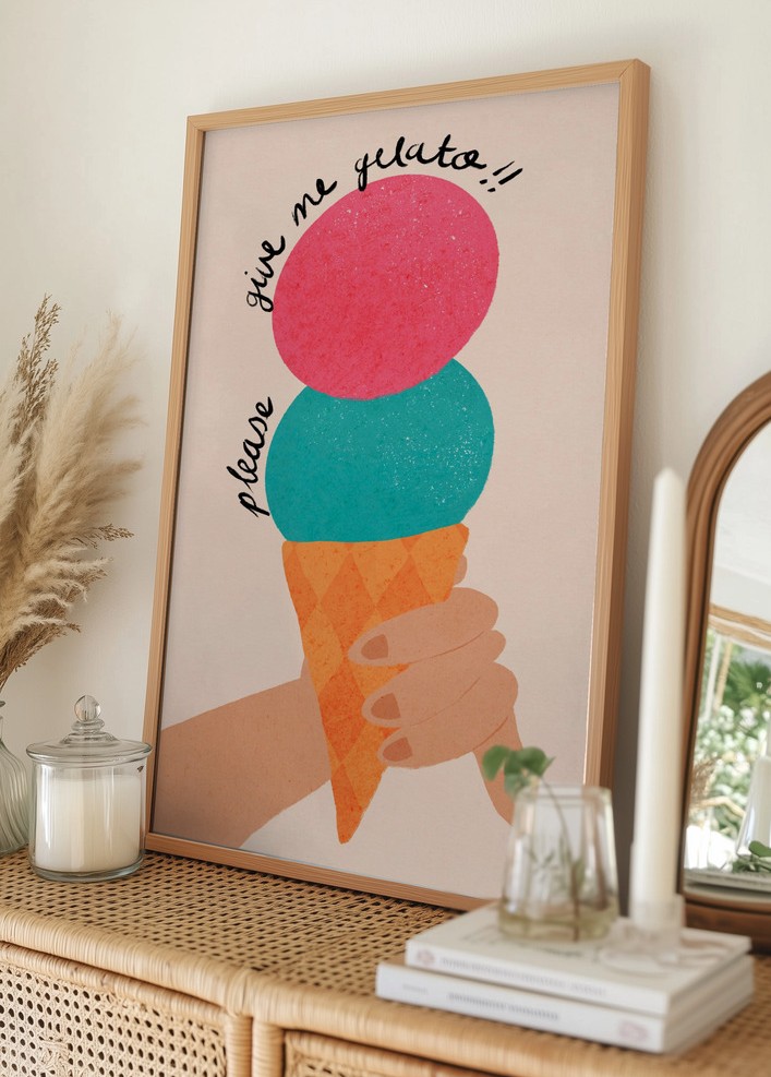 Please Give Me Gelato Ice Cream Typography Strawberry and Bubblegum Plagát