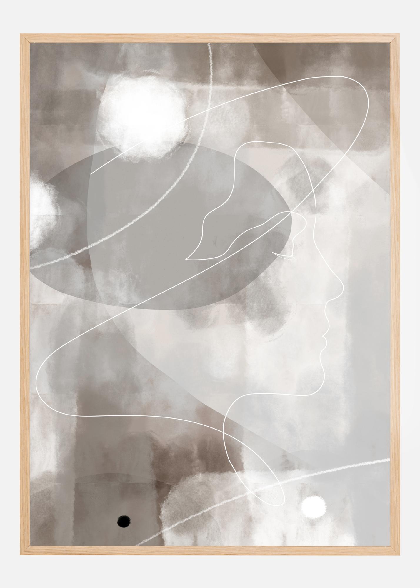 Umelecké dielo zobrazujúce ženu s klobúkom. Tento krásny profilový tlač bol zručne nakreslený bez toho, aby sa pero zdvihlo z tlače. Kontúra ženy je umiestnená proti svetlohnedému pozadiu s niekoľkými bielymi oblakmi v hornej časti tlače. Krásny plagát pre ženskú spálňu.