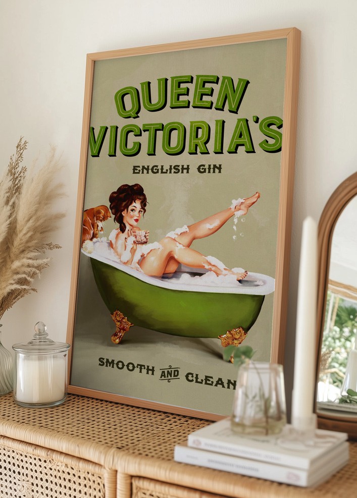 Queen Victoria English Gin Bath Pinup Girl Plagát