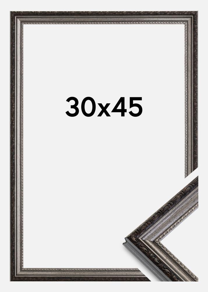 Začni výber rámu »Abisko je elegantný strieborný rám v retro štýle s peknými ozdobami. Vynikajúca voľba, keď hľadáte klasický strieborný rám.