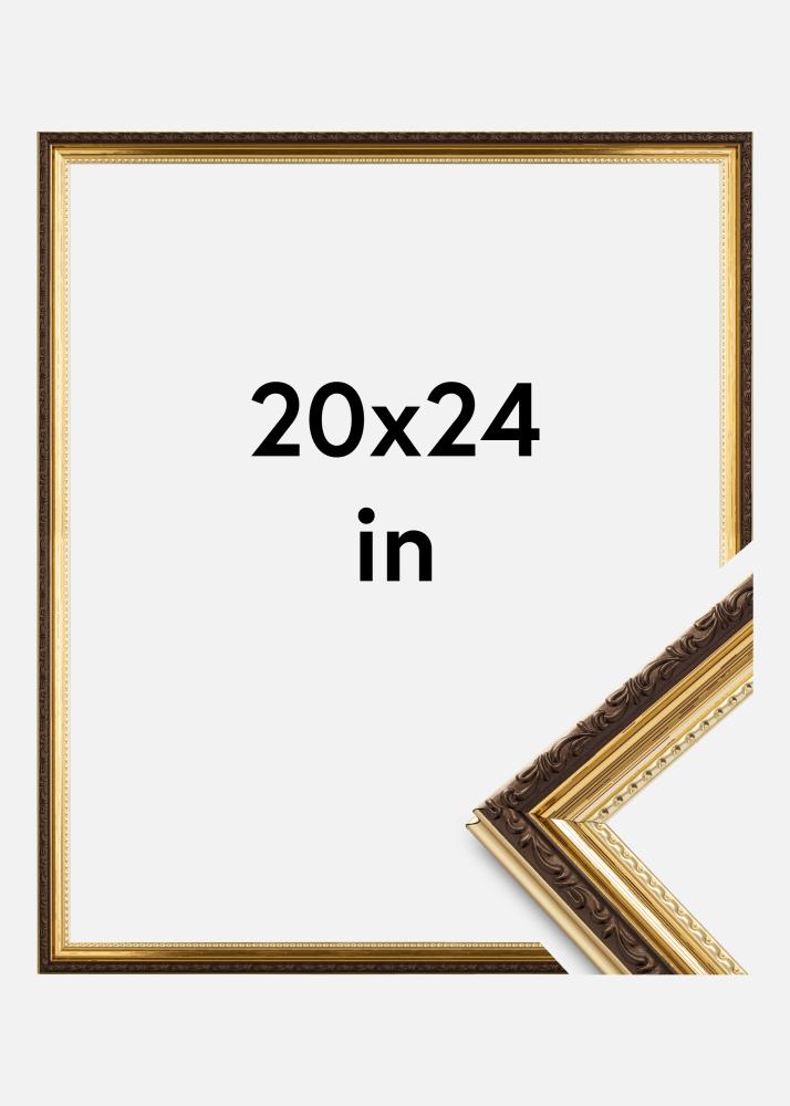 Hľadáte krásne zdobený rám v staršom štýle? Abisko Akrylátové sklo Zlato je robustný zlatý rám s neuveriteľne štýlovými ornamentami. Rám má 25 mm široký profil s lesklou zlatou farbou a zdobeným hnedým okrajom v strede. Aj zlatá časť je zdobená, s vlnitým vzorom najbližšie pri skle.