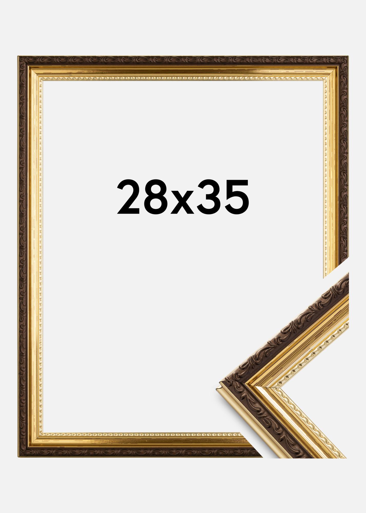 Hľadáte krásne zdobený rám v staršom štýle? Abisko Akrylové sklo Zlatá je robustný zlatý rám s neuveriteľne štýlovými ornamentmi. Rámová lišta široká 25 mm má lesklú zlatú farbu s ozdobnou hnedou bordúrou uprostred. Aj zlatá časť je ozdobená, s vlnitým vzorom v blízkosti skla.