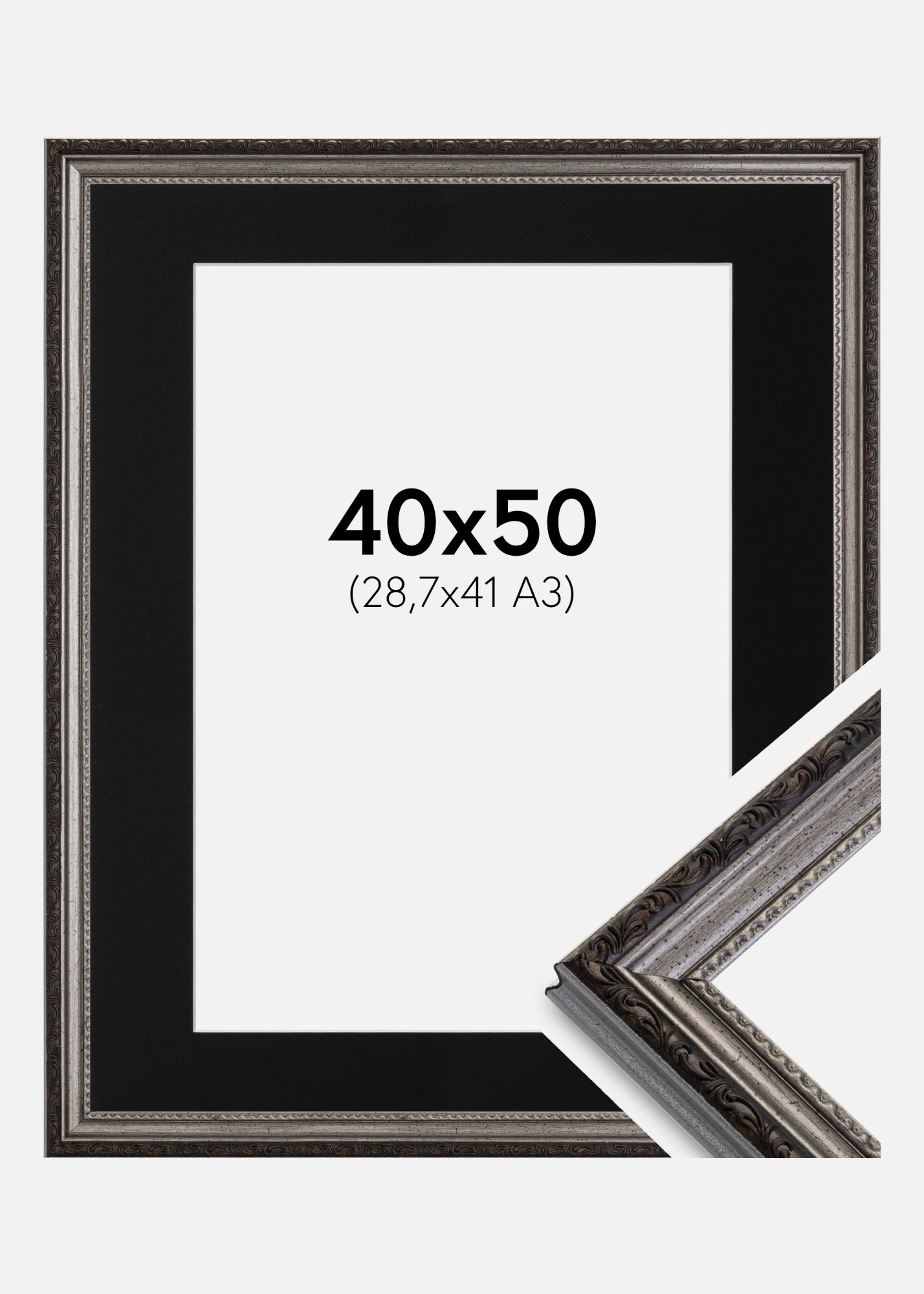 Rám Abisko Strieborná 40x50 cm - Pasparta Cierna 29,7x42 cm (A3)