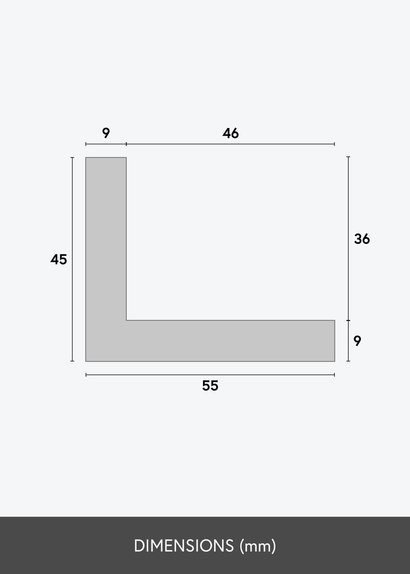 Rám má 55 mm široký rámový líšt a hĺbku 45 mm, čo ho robí robustným a štýlovým. Hladký, matný povrch spolu s rovnými hranami a úzkym predným profilom vytvára moderný vzhľad, ktorý sa hodí do väčšiny domácností. Vyrobený z borovice, Táto rám na obrazy kombinuje trvanlivosť s estetikou.