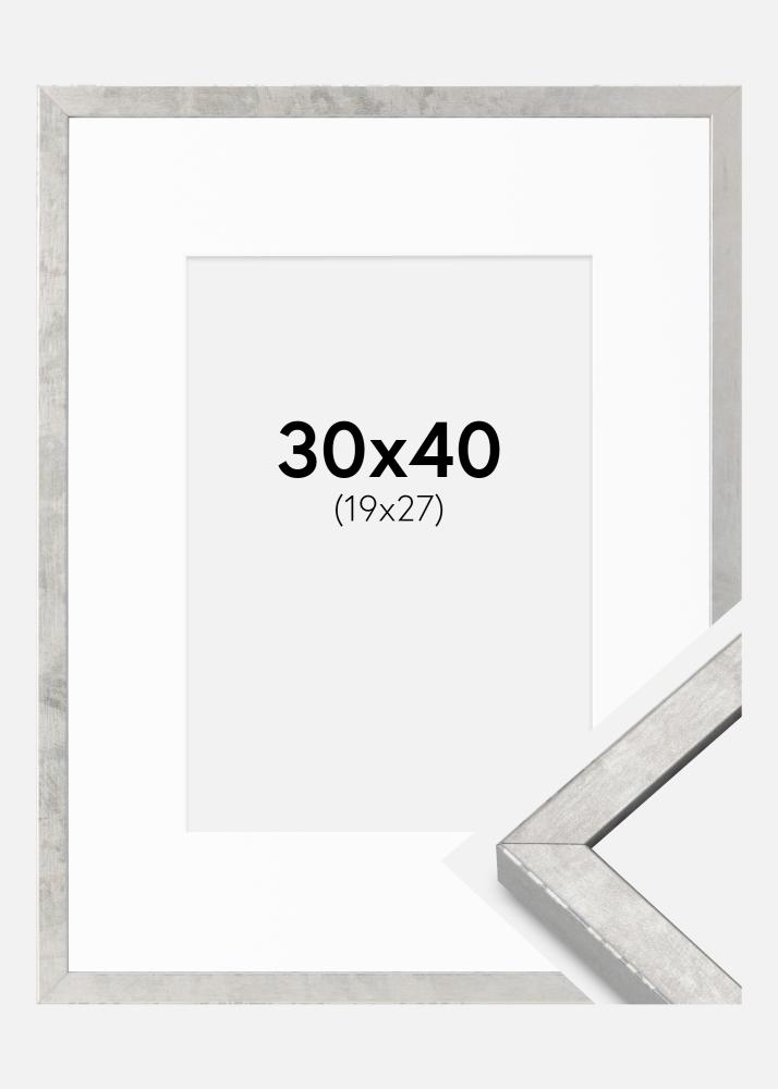 Rám Ares striebro 30x40 cm - Pasparty Biela 20x28 cm