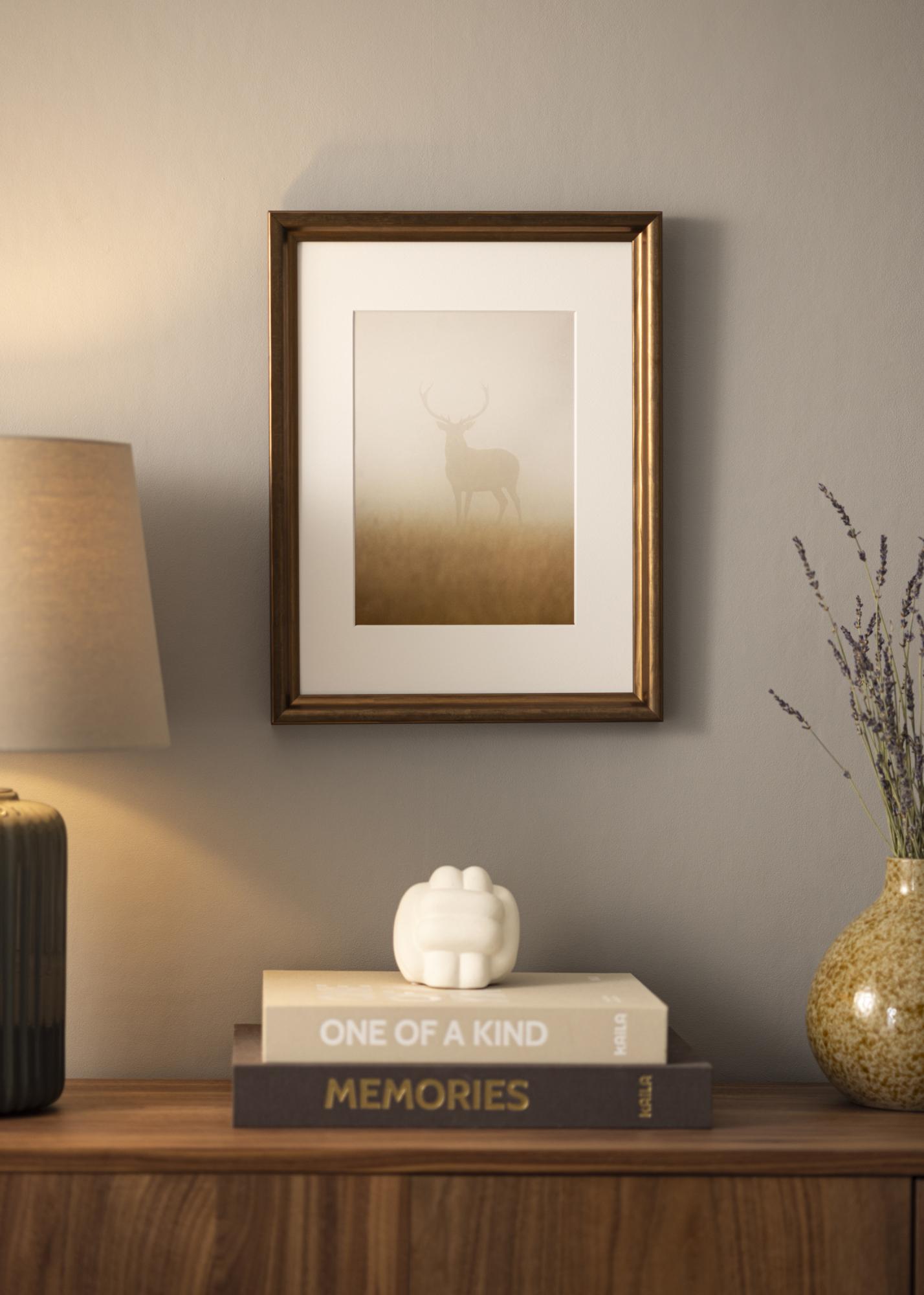 Elegantný rám vlastných rozmerov v nádhernej medenej farbe, ktorý dodáva robustný a exkluzívny dojem. Arjeplog Bronz nie je rám, ktorý sa hodí na všetky typy motívov, ale pre niektoré typy obrázkov je to vynikajúca voľba.