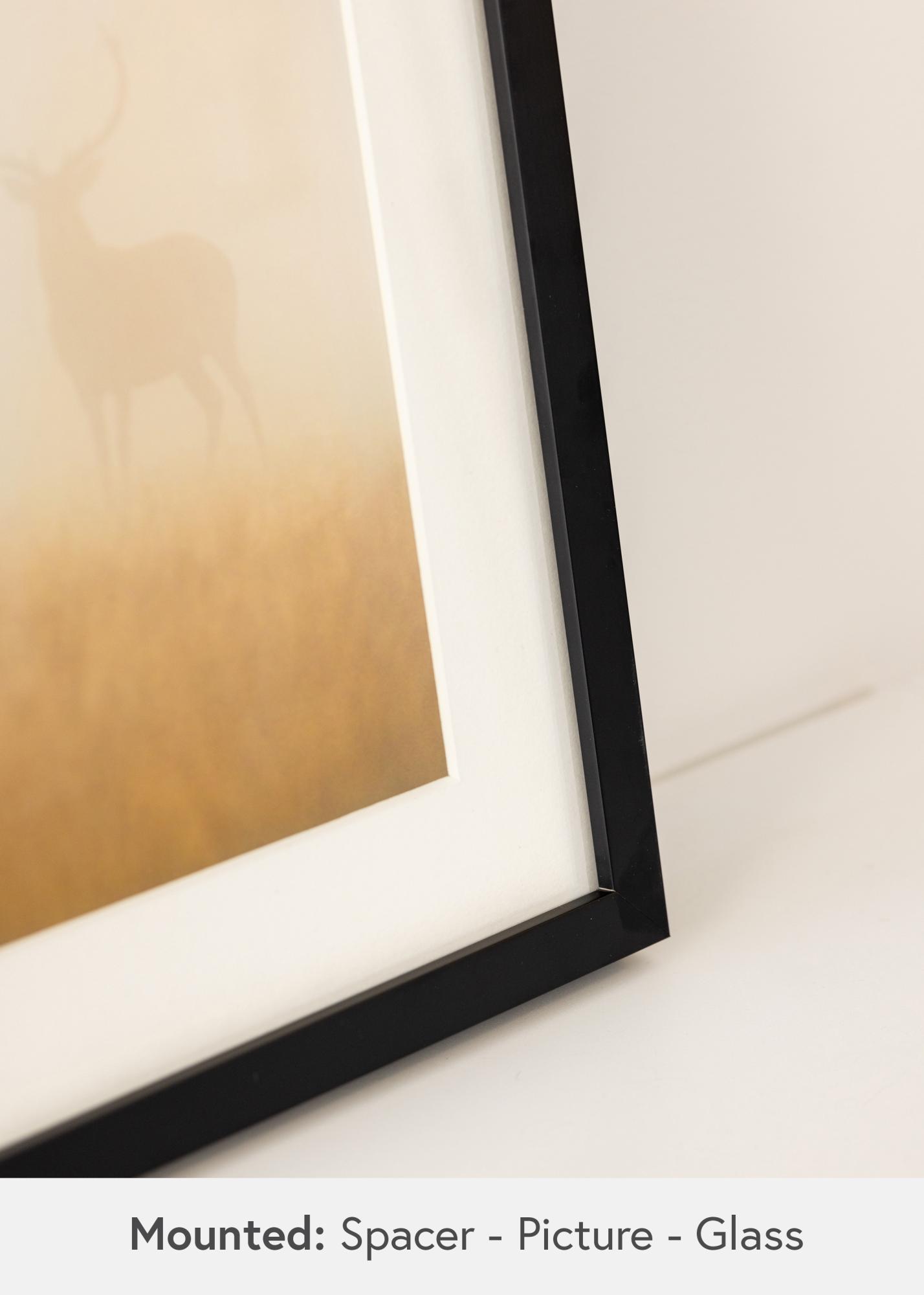 Vyrobený z borovice, Táto rám na obrazy je zároveň odolný a ľahký, čo ho robí jednoduchým na manipuláciu a montáž. Jedinečnou vlastnosťou Balder Čierny je priložená dištančná lišta. Táto lišta vytvára medzeru medzi sklom a obrázkom, čo poskytuje efekt hĺbky a umožňuje umiestniť obrázok ďalej do rámu alebo ho nechať vznášať sa medzi sklom a zadným krytom. To poskytuje elegantné a exkluzívne zarámovanie, ktoré skutočne zdôrazňuje motív.