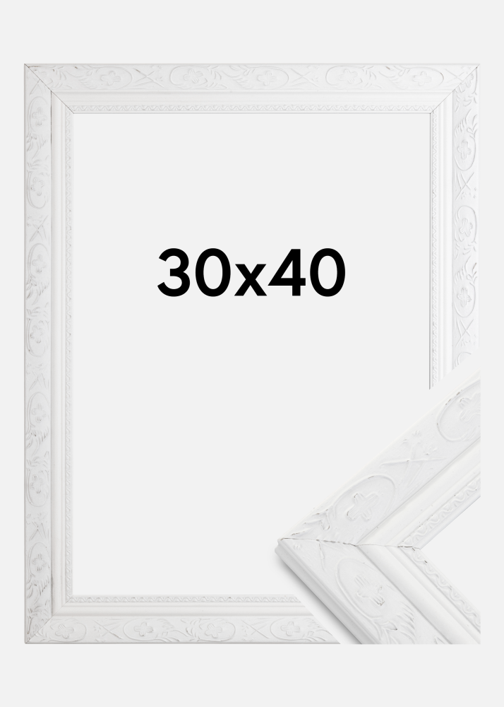 Barock Vit je veľkolepý drevený rám v retro štýle s krásnymi ozdobami. Perfektný, keď hľadáte široký krásny drevený rám v staromódnom štýle. Skvelá voľba pre zväčšeniny, ktoré máte obzvlášť radi.