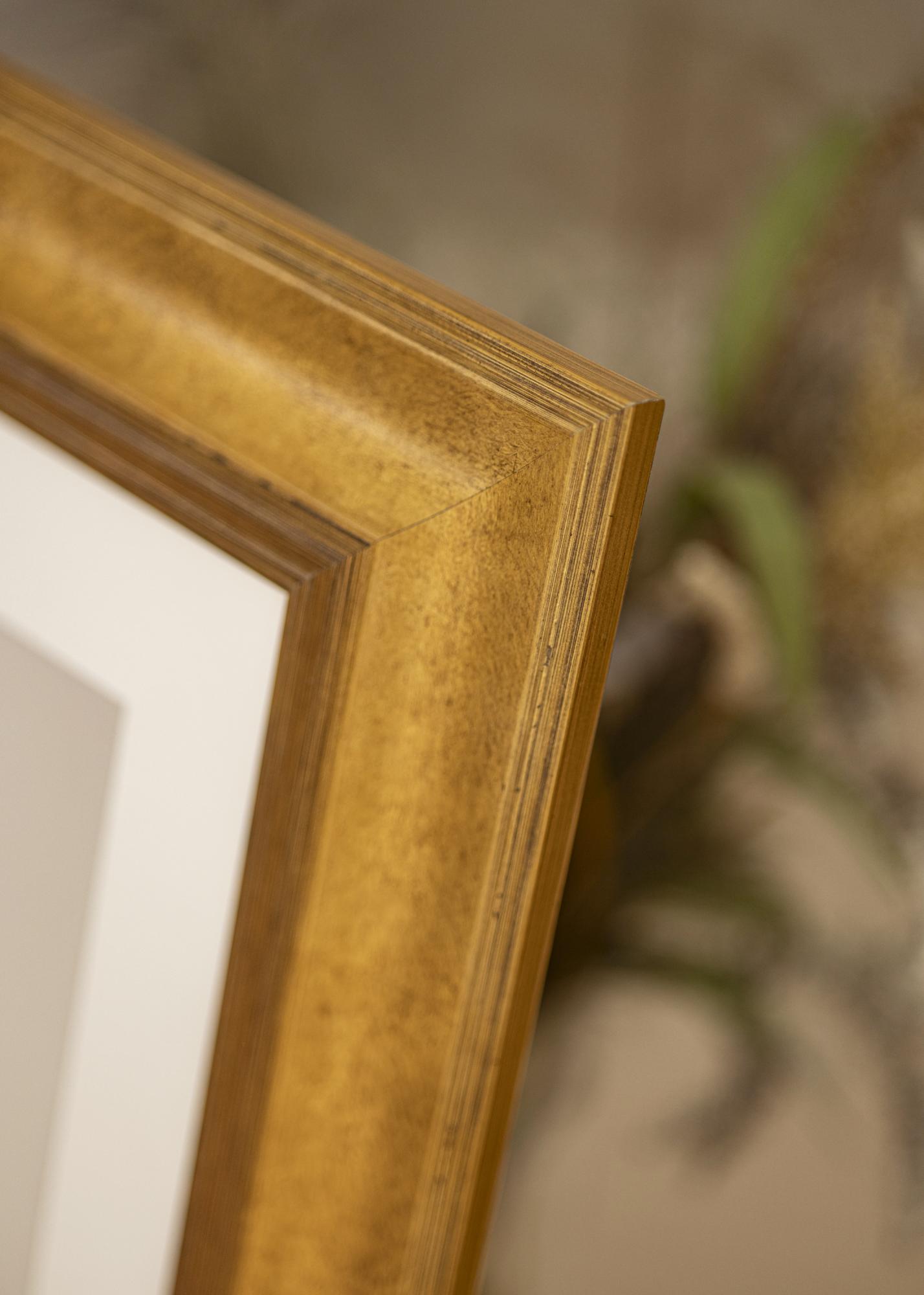 Rám je vyrobený z borovice a má tenké línie pozdĺž okrajov, ktoré pridávajú sofistikovanú bohatú detailnosť. Teplý zlatý odtieň poskytuje nadčasovú eleganciu, ktorá sa dokonale hodí do moderných aj tradičných interiérov. Pretože každý obrazový rám je vyrobený na objednávku v našej vlastnej dielni na výrobu rámov, môžete si byť istí, že dostanete produkt, ktorý je na mieru prispôsobený vašim konkrétnym potrebám.