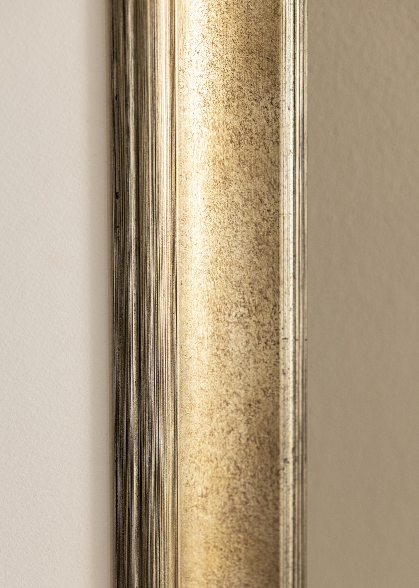 Jemné, lineárne dekorácie pozdĺž okrajov prispievajú k elegantnému vzhľadu rámu, zatiaľ čo kefovaný povrch so subtílnymi farebnými zmenami zvýrazňuje jeho hĺbku a textúru. Tón tmavého striebra vytvára klasický a nadčasový pocit, ktorý sa hodí do väčšiny interiérových štýlov.