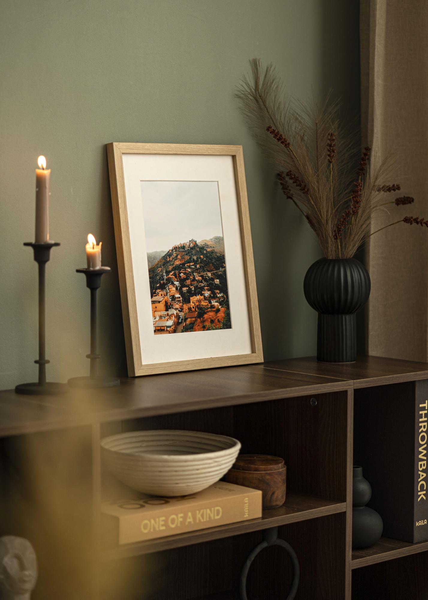 Blocky Dub je vyrobený z borovice s pravou neošetrenou dubovou dyhou, čo dáva autentický a prirodzený vzhľad. Každý rám je vyrobený v našej vlastnej dielni, čo znamená, že môžeme zaručiť vysokú kvalitu a presnosť v každom detaile. Keďže je Táto rám na mieru, môžete si prispôsobiť veľkosť presne podľa vašich potrieb a požiadaviek.