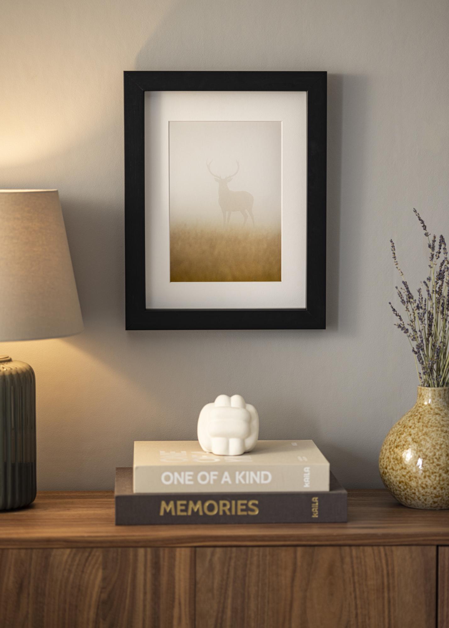Rám z borovicového dreva vyrobený vo Fínsku, ktorý je natretý čiernou farbou priamo na drevo pre autentickejší pocit z dreva. "Boxholm Čierna" má hĺbku 43 mm, čo je ideálne, keď chcete rámovať rôzne typy predmetov. Alebo ak chcete, aby váš rám vystupoval ďalej od steny. K rámu je zahrnutá aj distančná lišta, ktorá vám umožňuje vybrať si medzi dvoma hĺbkami rámovania.