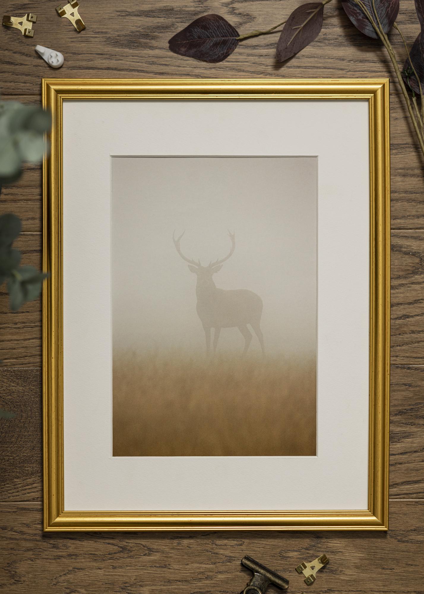 Elegantný zlatofarebný rám s červenými škvrnami v klasickom nadčasovom dizajne. Svojou neutrálnou striebornou farbou je to rám, ktorý sa hodí k takmer všetkým motívom a kontextom.