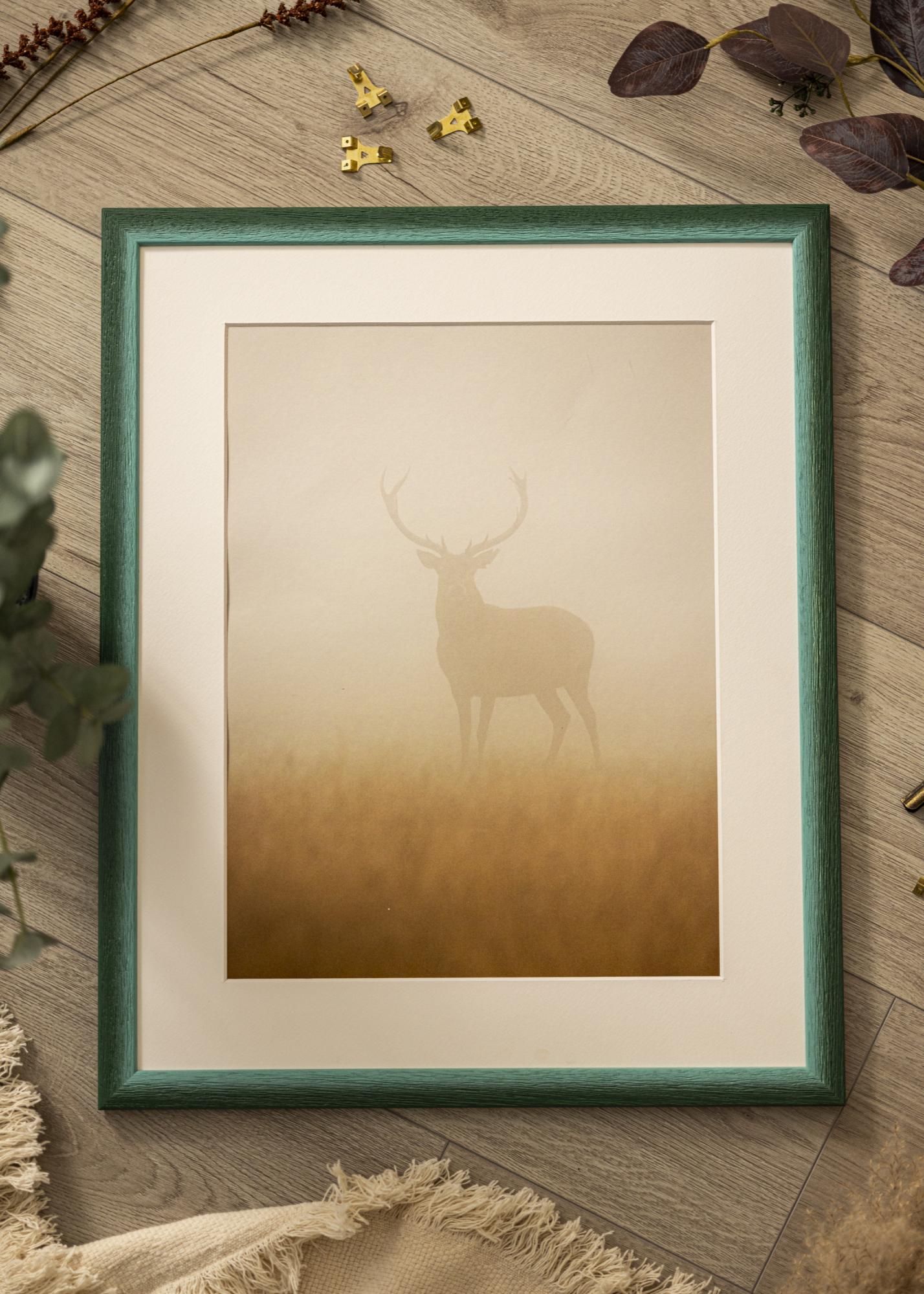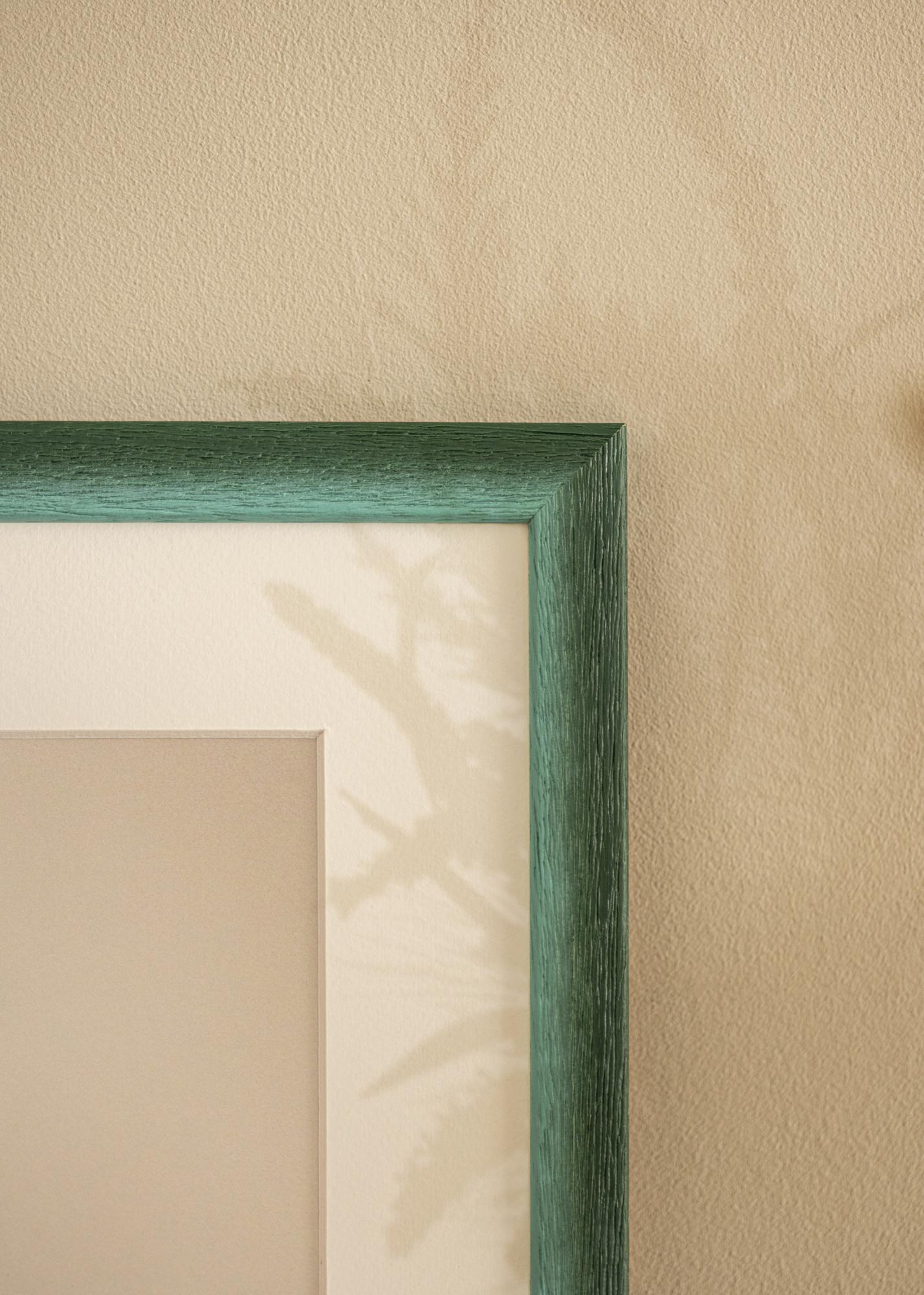 Tlmene zelená farba má jemné variácie, ktoré vytvárajú živý a prirodzený vzhľad, zatiaľ čo výrazná drevená štruktúra s hlbokými žilami vytvára rustikálny pocit. Povrch má matnú úpravu, ktorá zjemňuje intenzitu farby a poskytuje jemný dojem, vďaka čomu môžu vaše fotky skutočne vyniknúť. Úzky profil vyvažuje rustikálny vzhľad s modernou jednoduchosťou.
