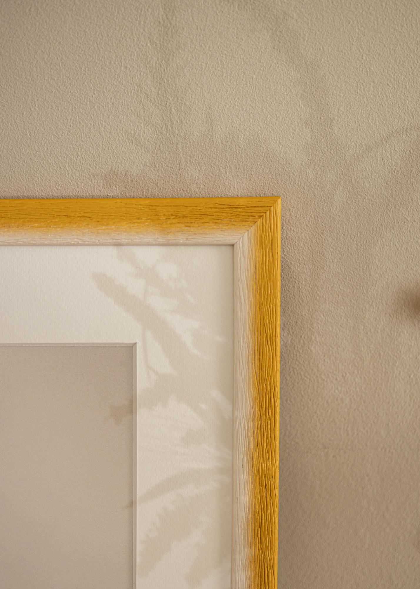 Táto obrazový rám má harmonický prechod farieb od svetlého, prírodného bieleho odtieňa až po teplý okrový žltý odtieň. Povrch je vyznačený výraznou drevenou štruktúrou s hlbokými žilkovaniami, čo dodáva hmatový a prirodzený pocit. Jemný prechod medzi farbami vytvára mäkký, maľovaný vzhľad so žiarivou hĺbkou, ktorý obohacuje každý obraz.