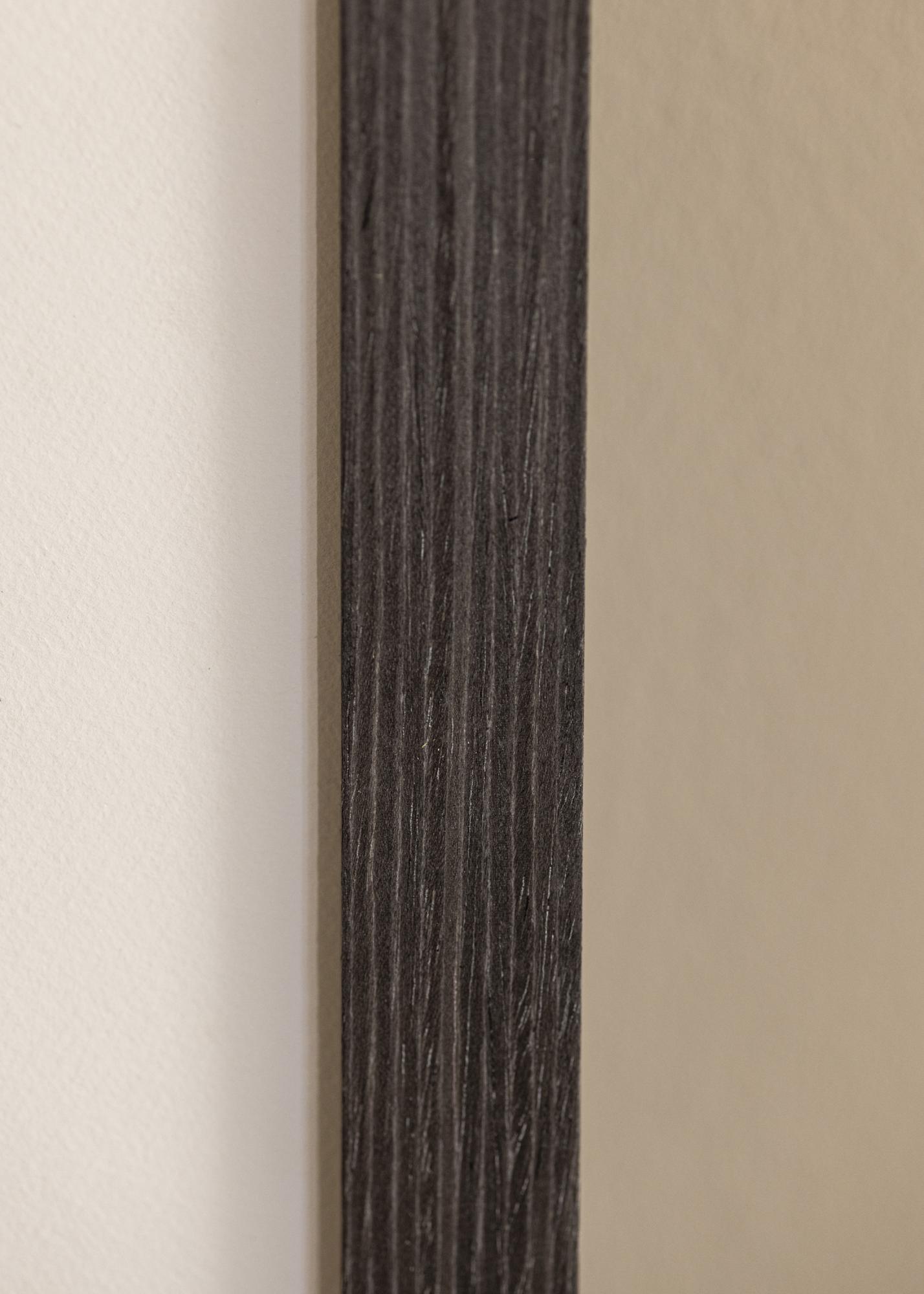 Táto rám na obrazy je vyrobený z borovice a má tmavý drevený povrch so zreteľnou žilkovanou štruktúrou. Hlboký, takmer čiernohnedý tón umožňuje prírodnej textúre dreva vyniknúť cez ľahko matný povrch, čo zvýrazňuje jeho prirodzený vzhľad. Úzka a rovná profilová línia poskytuje decentný a štýlový vzhľad, ktorý sa hodí do väčšiny prostredí.