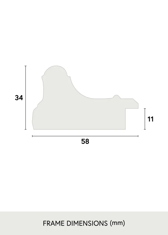 Rám, ktorý je 57 mm široký a 34 mm hlboký, má matný povrch, ktorý dopĺňa moderné aj tradičné štýly interiéru. Biela pasparta vytvára vizuálnu prestávku medzi obrázkom a rámom, čo nielen posilňuje estetiku umeleckého diela, ale tiež ho chráni tým, že zabraňuje priamemu kontaktu so sklom.
