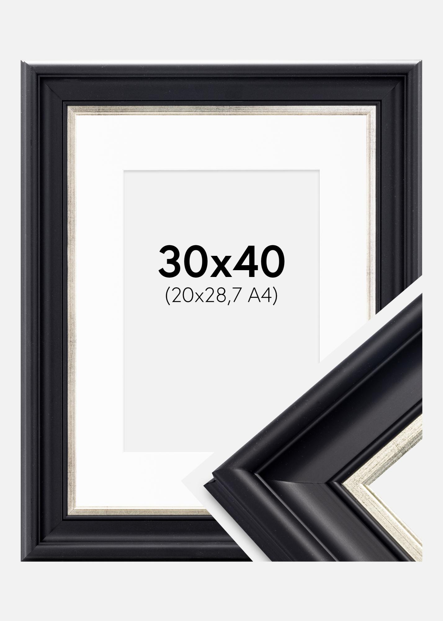 Rám Dalarna Cierno-strieborná 30x40 cm - Pasparta Biela 21x29,7 cm (A4)